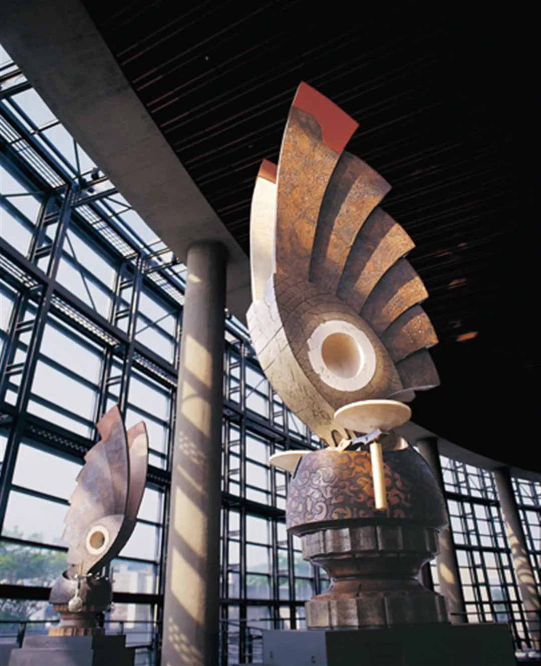 《瀰香雙西塔─璃羅吹雪》2003結合陶土、玻璃、木材和金屬