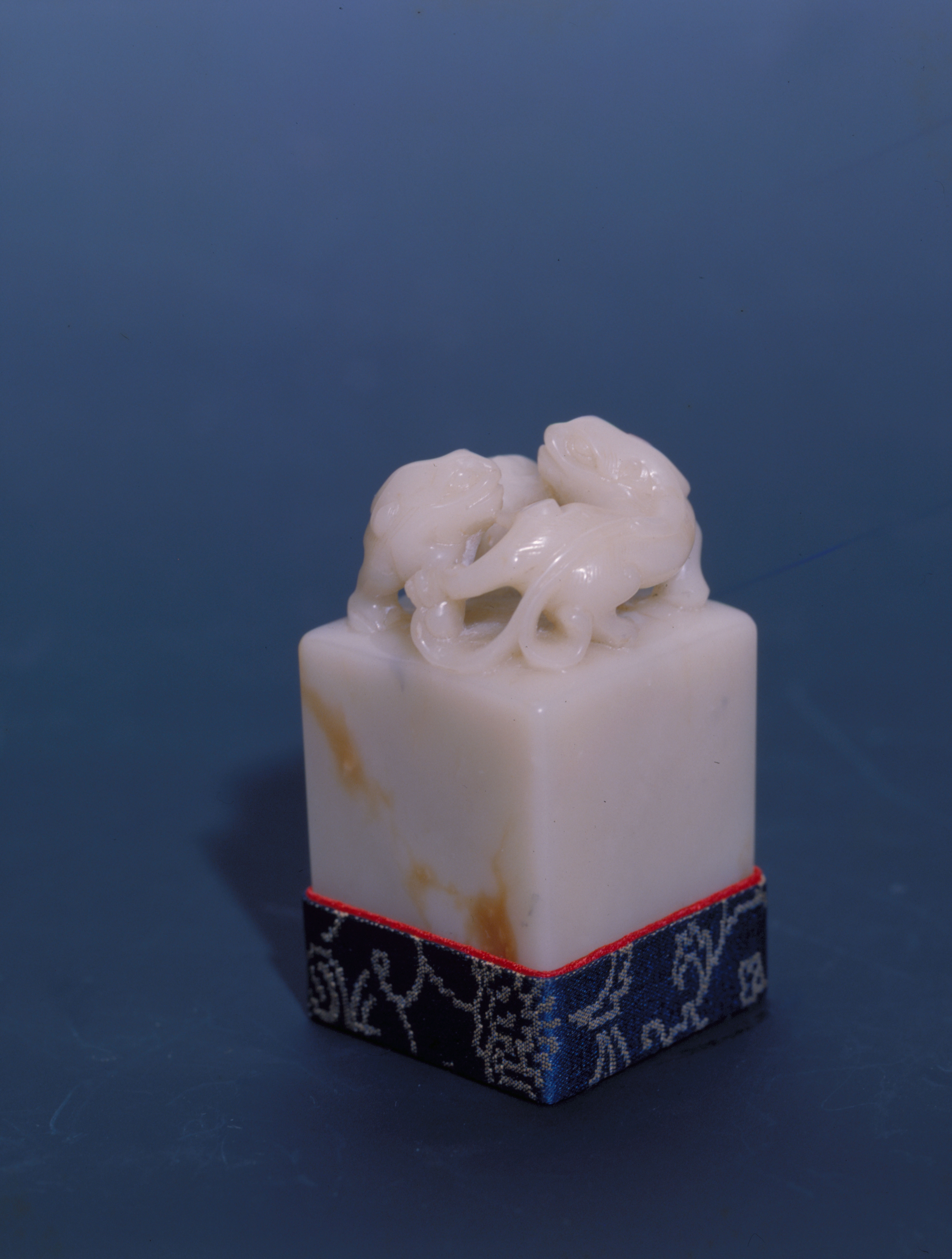 在市場上,白芙蓉價格略遜色彩鮮豔的雞血石,但因它質細且軟硬適中,易於受刃,反而更受篆刻家的歡迎。除了印石底部的印文外,頂端往往還刻上虎、獅等樣式的「印鈕」。