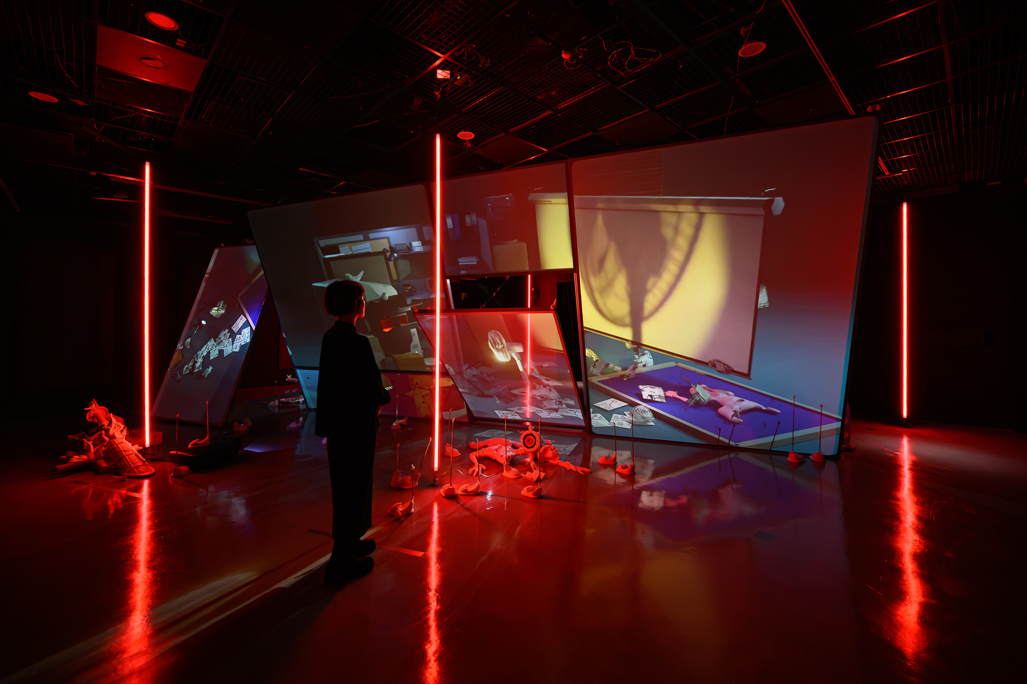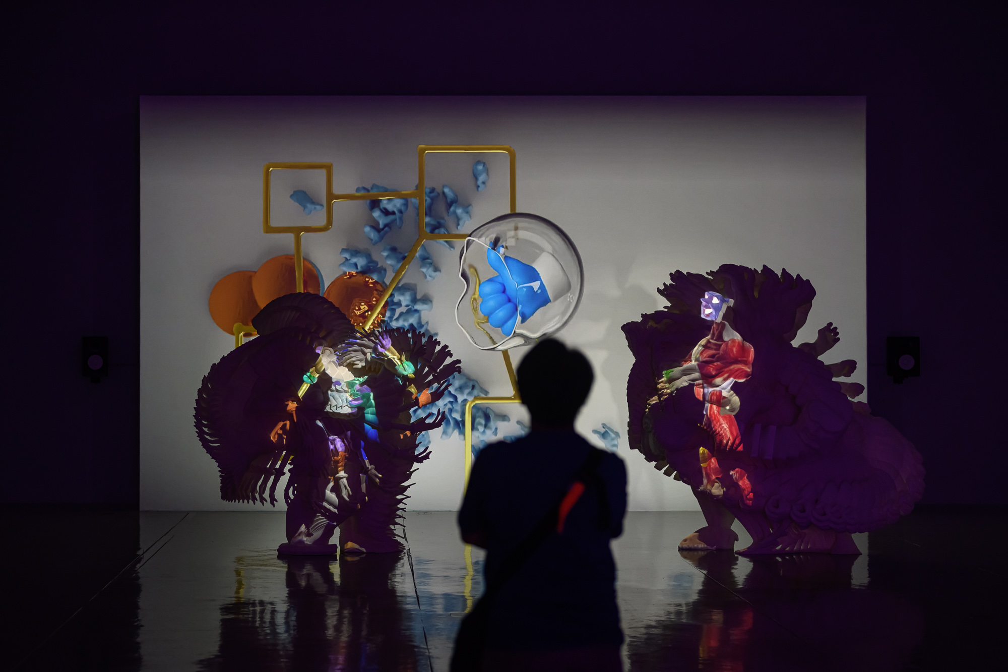 長期關注「媒體素養」議題的法國藝術家克文.布黑(Kévin BRAY),則是以大型3D列印雕塑結合光雕,帶來作品〈原型夾制:塑造身分,置換世界〉,希望引導觀眾反思日常所消費的媒體內容及其背後的運作機制。