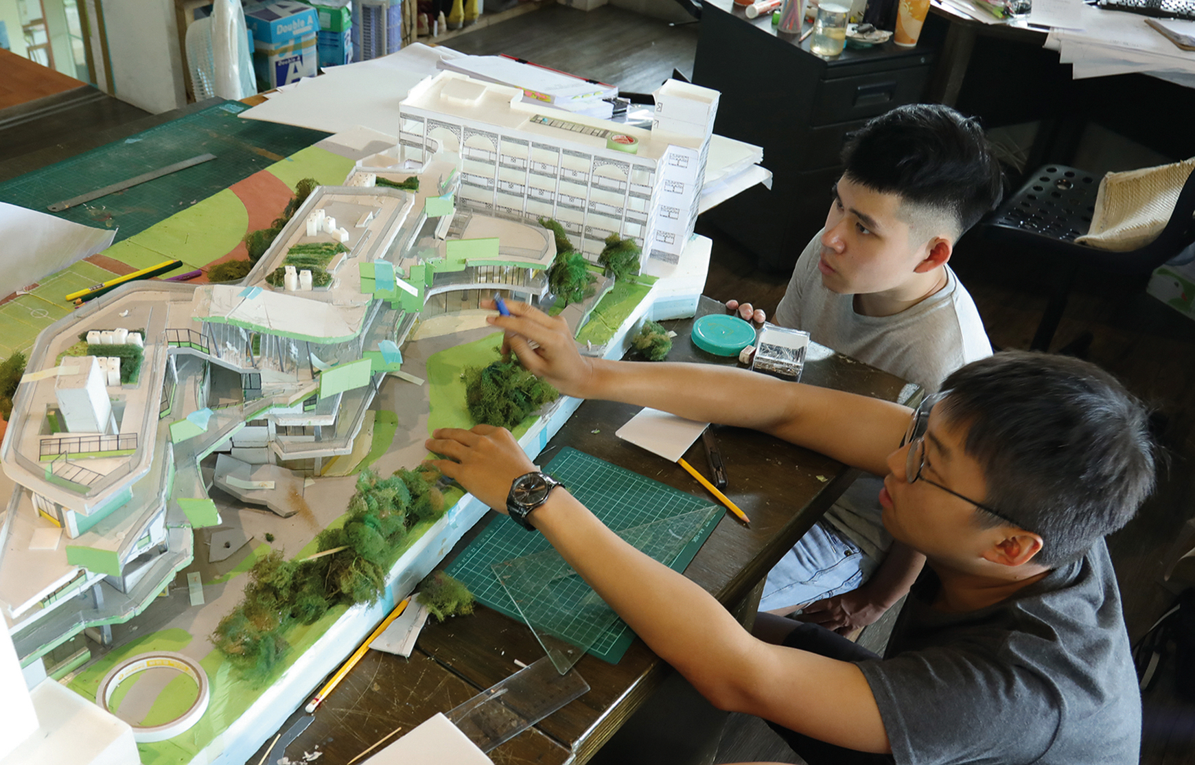 二十多年的老夥伴工務經理楊志仲,總是拿著計算機,不停的精算工程造價。雖然明明知道每一次的修改都是成本,還是明知不可為而為。「人生每一個階段,都可以有值得專注的事。」面對最愛的建築,黃聲遠希望每一個人都盡力。