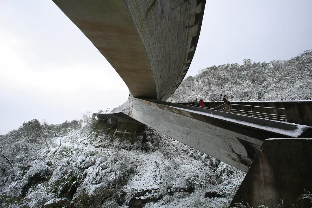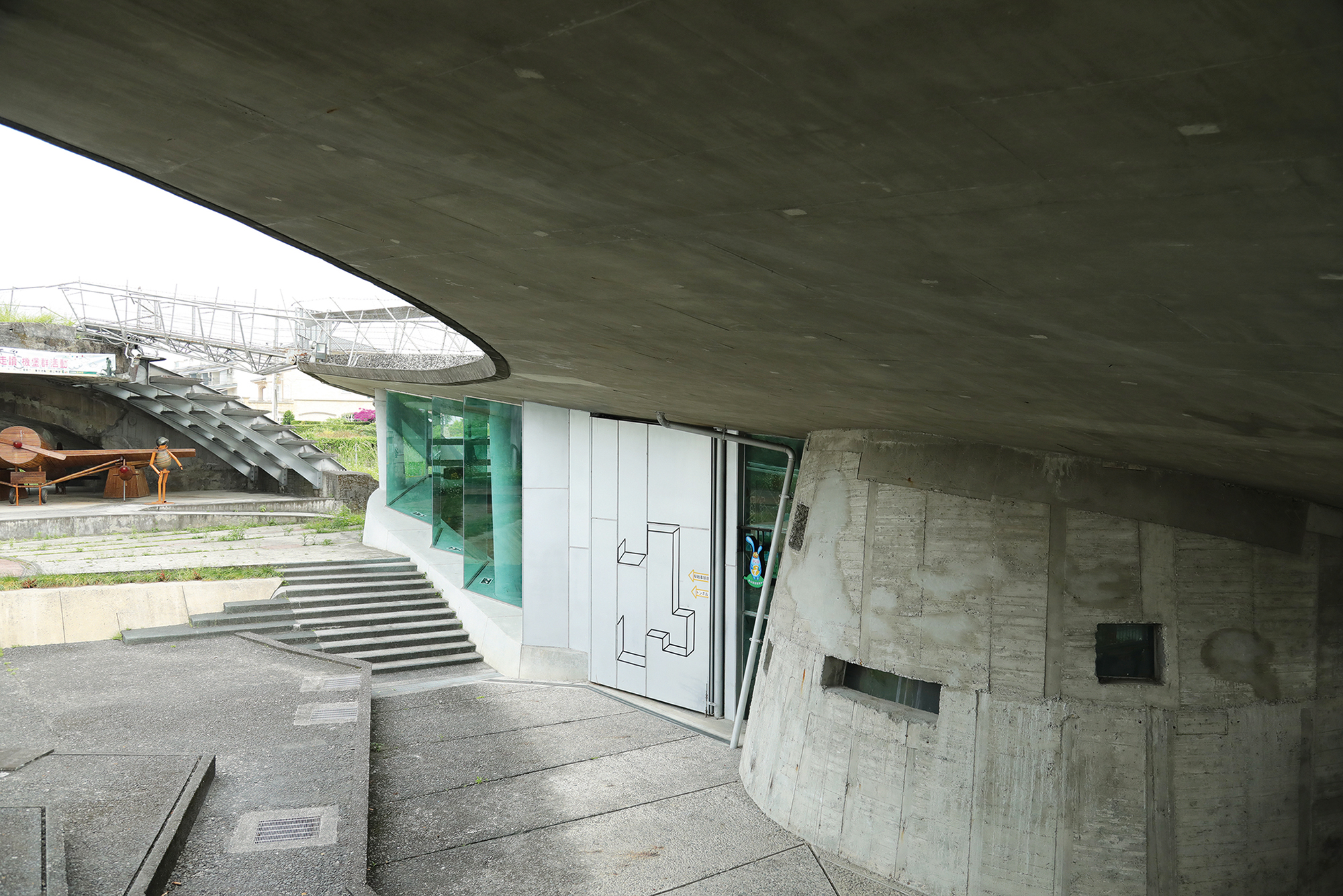 「櫻花陵園」入口橋的流線型設計,十分具有現代感。(田中央提供)
