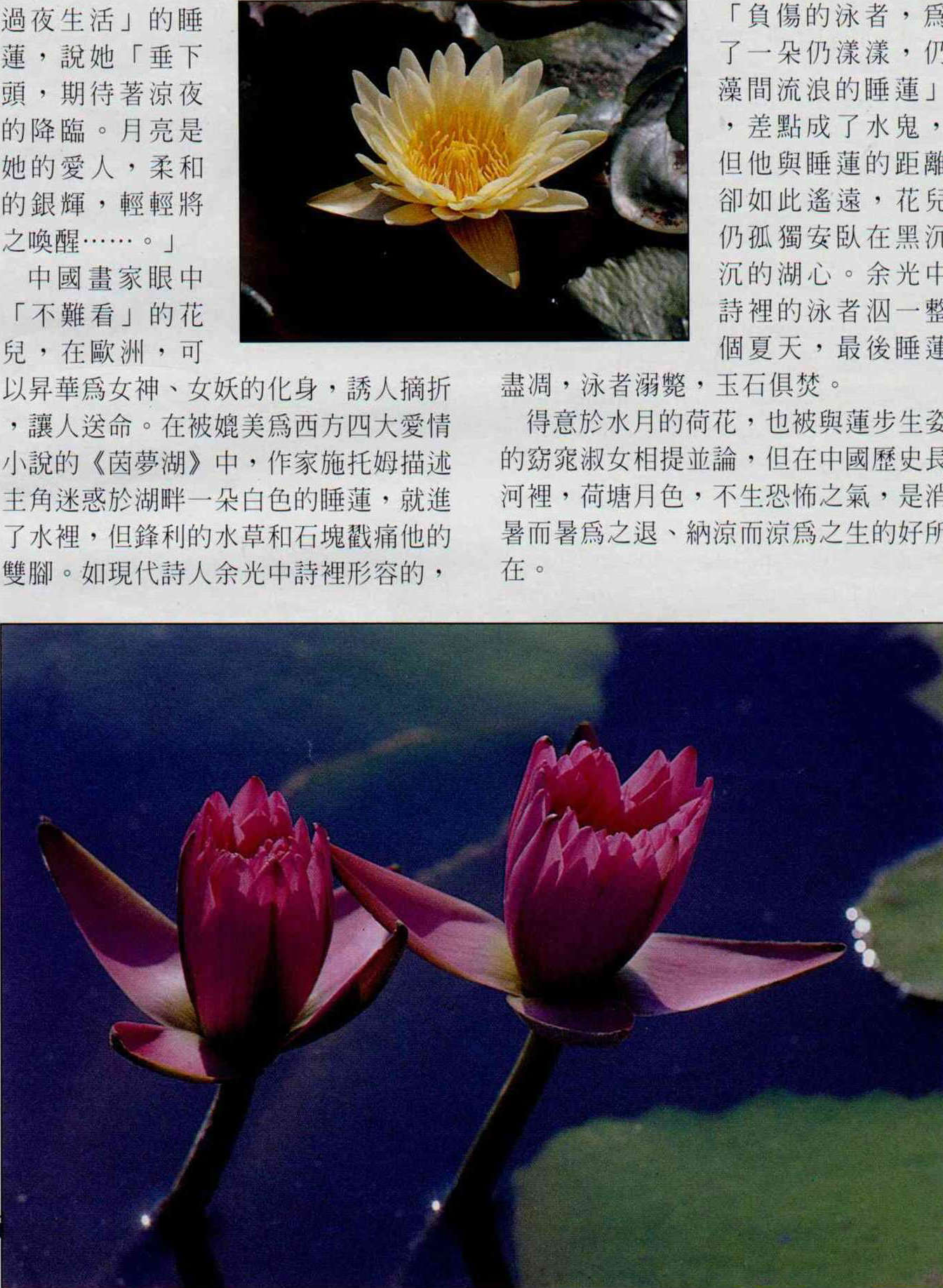 中國人賞荷千年;近來,睡蓮則成了台灣花卉市場上的新寵……。
