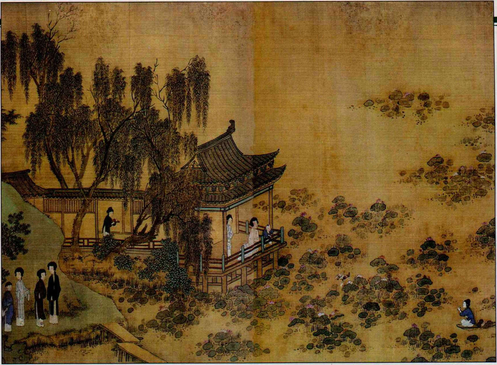 荷花蕩裡柳蔭間,蓮舟隨著湖水縈回。日暮暢遊盡興,小舟滿載蓮房,再轉棹返回繁華的都城。這不正是讓人嚮往的「生活品質」?圖為清朝楊晉的「人物圖卷」。(張良綱)