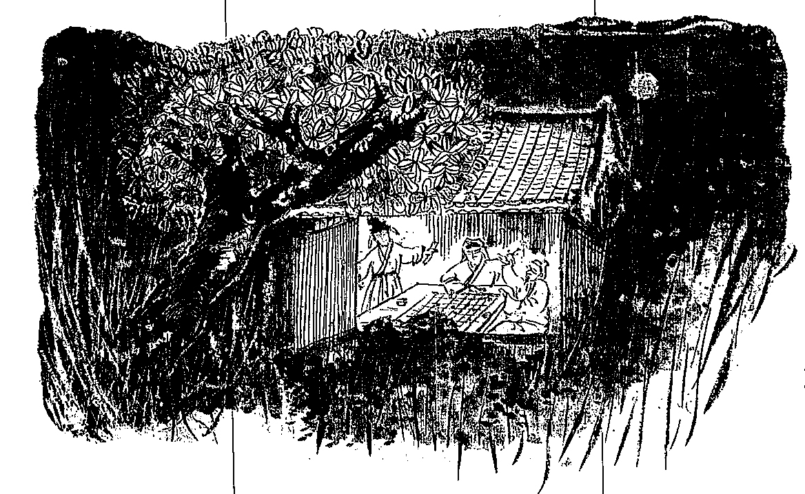 下完棋,寧菌取出酒來,三人喝了幾杯,愈發投機,大剌剌的斑寅也不客氣了,直說:「拿些下酒菜來呀!」寧菌原未備菜,只找出一些鹿肉,斑寅三兩口,就清了盤底,斑特卻一口未沾,寧菌勸菜,他只推說:「年紀大了嘛,缺牙嚼不動了。」