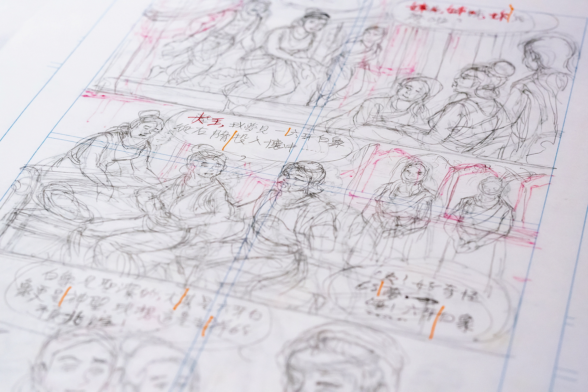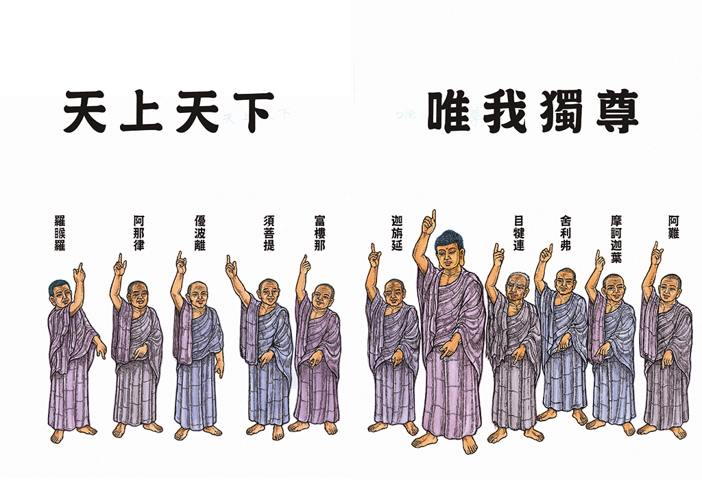因為不能有差池,養成許貿淞細膩的觀察力,以及考證到底的執著。這些特質,清晰呈現在用漫畫寫地方誌──《淡水的前世今生》,和世紀之作《佛祖傳》中。「十多年前,我女兒哀怨的說,您都沒有為我們留下作品。」一句話,觸擊到許貿淞最柔軟的心底,開始了為時10年的全彩工筆創作。