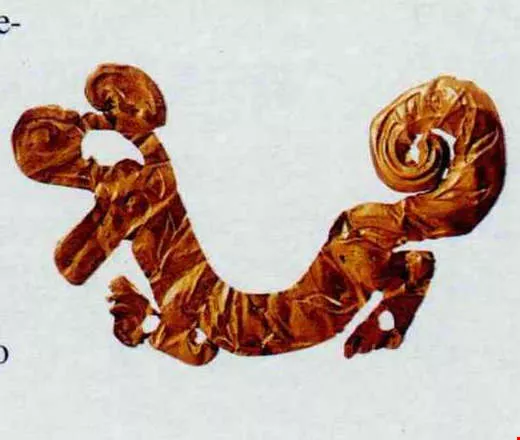 昂起大頭、張大嘴巴的金虎,凸顯出三星堆與少見金器黃河流域文明的大異。(太平洋文化基金會提供)