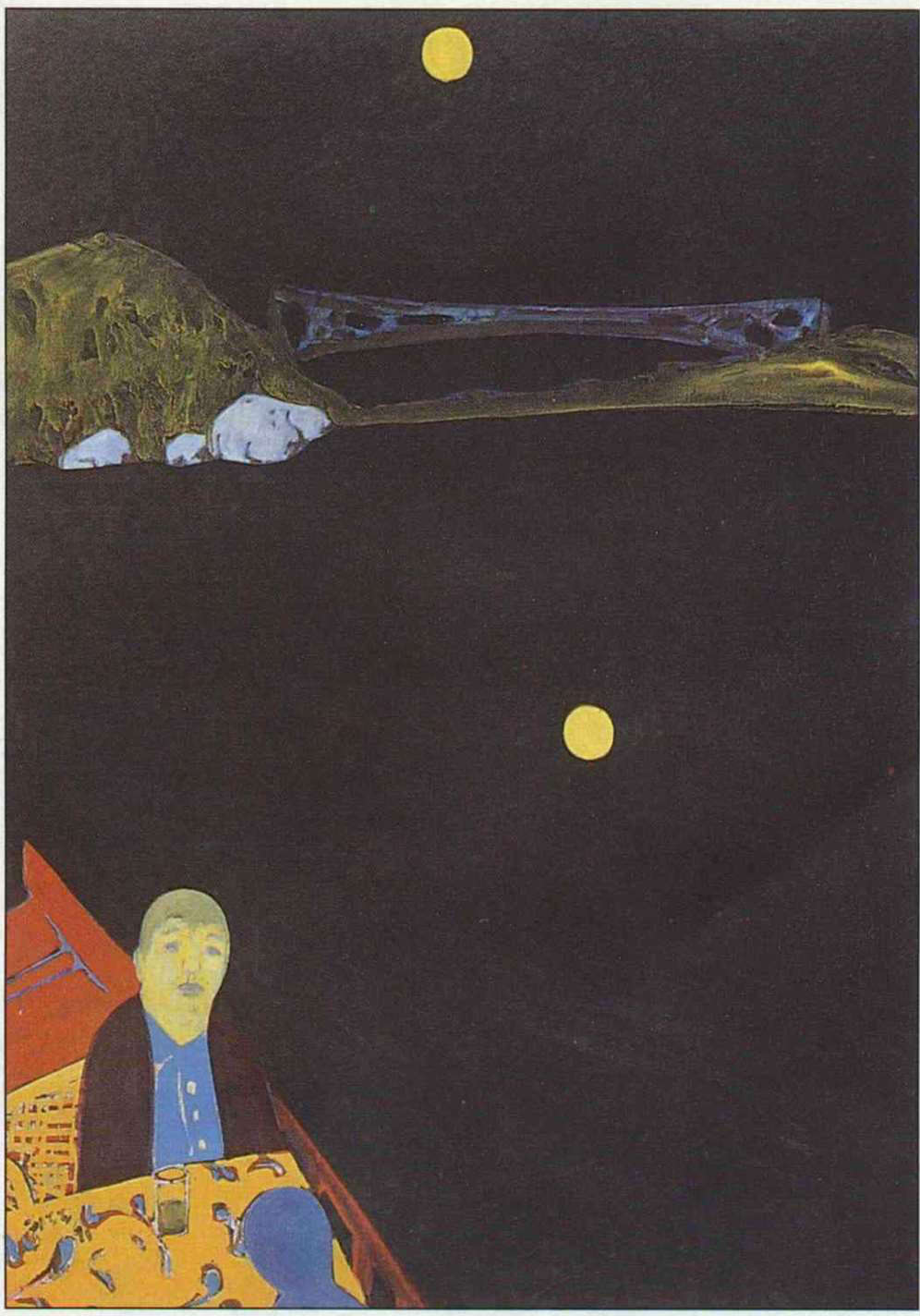 許雨仁〈立在石堆的自畫像〉130.5x97cm,1989年(台北漢雅軒提供)