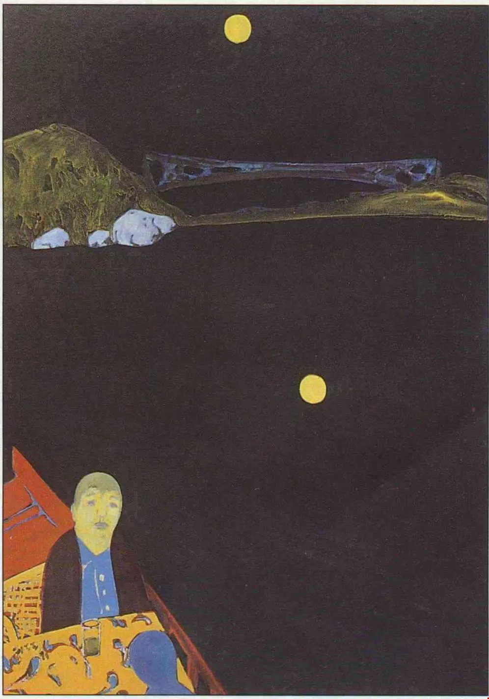 而強調與社會結合的「台北畫派」現代畫家盧天炎,二十多年來只畫過一張自畫像,那年他剛退伍回來,國家才退出聯合國沒幾年,除了對時局的困惑,在創作上,繪畫的色調、主題相當受限。此外在沒有幾家畫廊,沒有藝術市場的壓力下,創作者的生活壓力大得很。