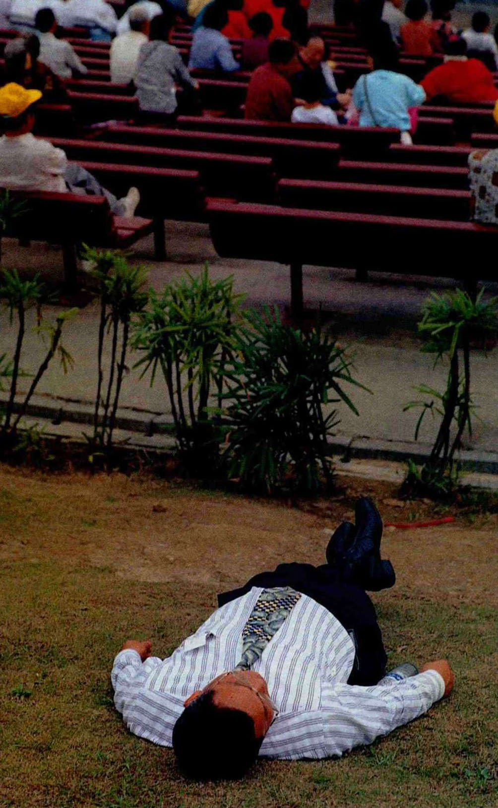 長恨此身非我有,何時忘卻營營?草皮上小睡一會兒,身心暫時由生活重重束縛中解放。(卜華志攝)(卜華志攝)