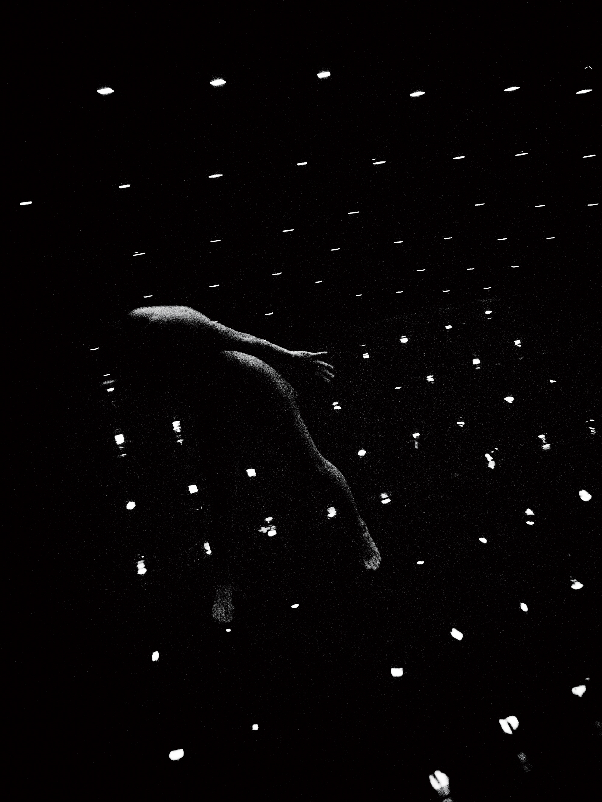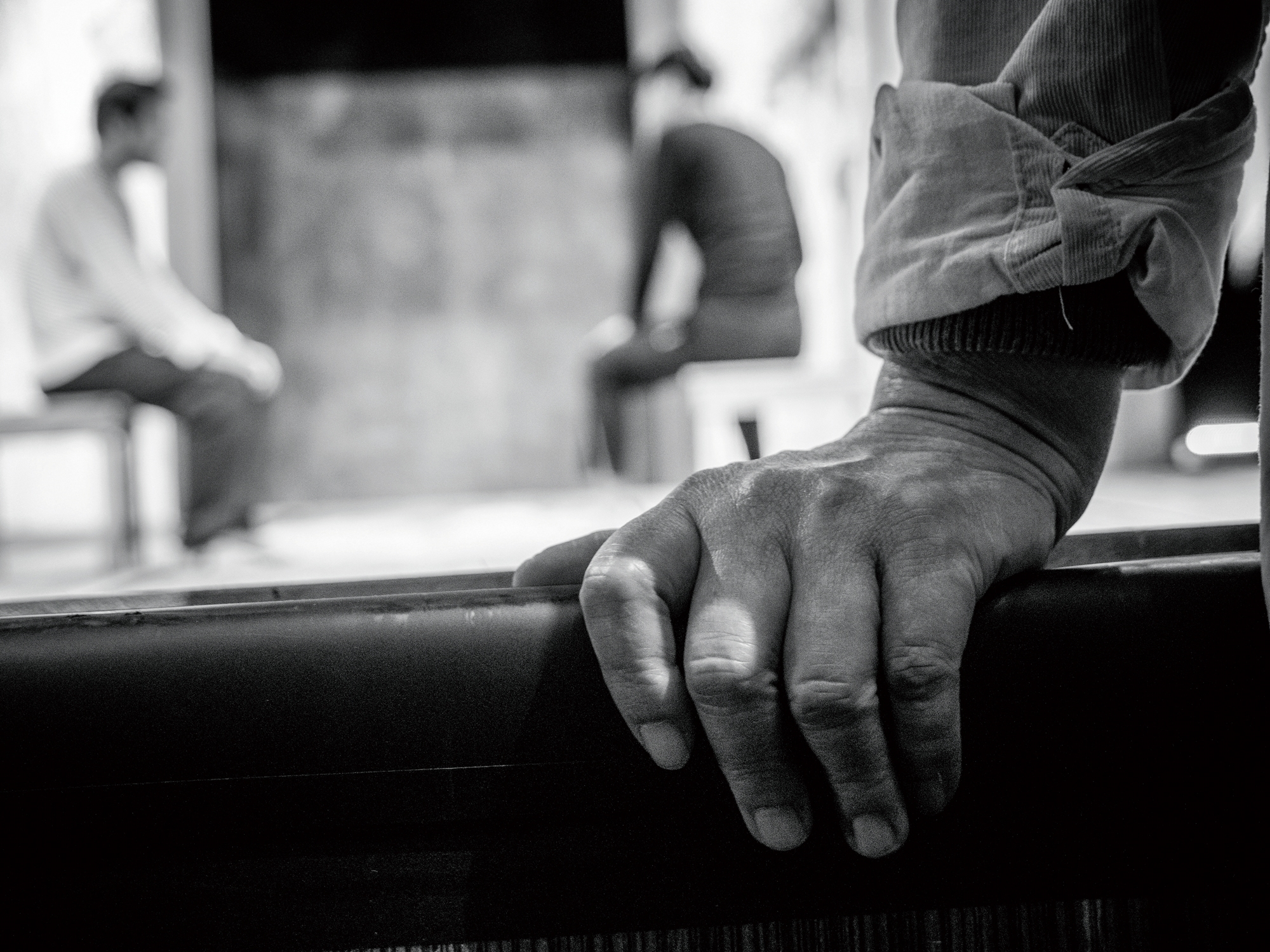 台前‧幕後 文‧黃之寅 圖‧許斌 翻譯‧陳正儀 2016 5月 EN 日本語 分享: 蔡明亮(左二)與《只有你》主角之一的李康生(右一)一同培養情緒。 排練時,身兼導演和編劇的蔡明亮若有所思。 台灣在1980年代正值經濟高速成長、社會積極開放,各類表演藝術亦百花盛開。在多變的舞台燈光下,留下活動中表演者的瞬間身影,對專業攝影師是一項挑戰。然而,幾位箇中翹楚翔實地記錄著台灣的表演藝術風景,仍持續堅持直到今日。 王墨林《長夜漫漫路迢迢》的綵排風景。 許斌,一個舞台攝影界耳熟能詳的名字。原是攝影記者出身,許斌自1992年起受兩廳院《PAR表演藝術》委任拍攝後,開啟了他戲劇紀錄的歷程。 王墨林《長夜漫漫路迢迢》的綵排風景。 有別於他人的現場演出拍攝,許斌為了讓觀者也能一窺作品誕生的過程,經常記錄幕後製作排練過程。「綵排時,導演亦是演員,是劇中的羅密歐、茱麗葉,是杜麗娘、柳夢梅……」許斌說:「導演懷著獨特的心境,並同時肩負無人能理解的壓力。」 舞蹈家蘇文琪徜徉於《微幅──迴返於生存之初》的世界中。 「小空間,大世界……是百千萬劫凝身一瞬。」許斌透過影像,試圖捕捉導演、編舞者與表演藝術家綵排時最真實的溫度。 蘇文琪為其《身體輿圖》的排練暖身。幾米《向左走‧向右走》經導演黎煥雄改編,躍上大舞台。集編舞家、導演和舞者於一身的劉守曜,正在為其獨舞作品《Shapde 5.5》作準備。 關鍵字: 表演藝術 舞台 許斌 綵排 導演 台灣 攝影 文化 人物 藝術 分享:
