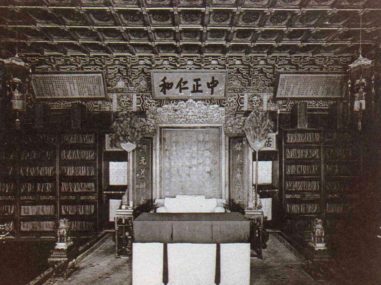 「宮中建築相當死板」,那志良說,由南邊的太和門到北邊神武門,正中依次有六座大殿。太和門以下的「外朝」三殿——「太和殿」、「中和殿」、「保和殿」,是重要的「禮堂」,每逢重要節慶典禮或策試,都在此舉行。這三殿和它們的左右配殿,在民國初年就劃歸內政部成立「古物陳列所」,展覽從熱河行宮和瀋陽故宮運來的古物。
