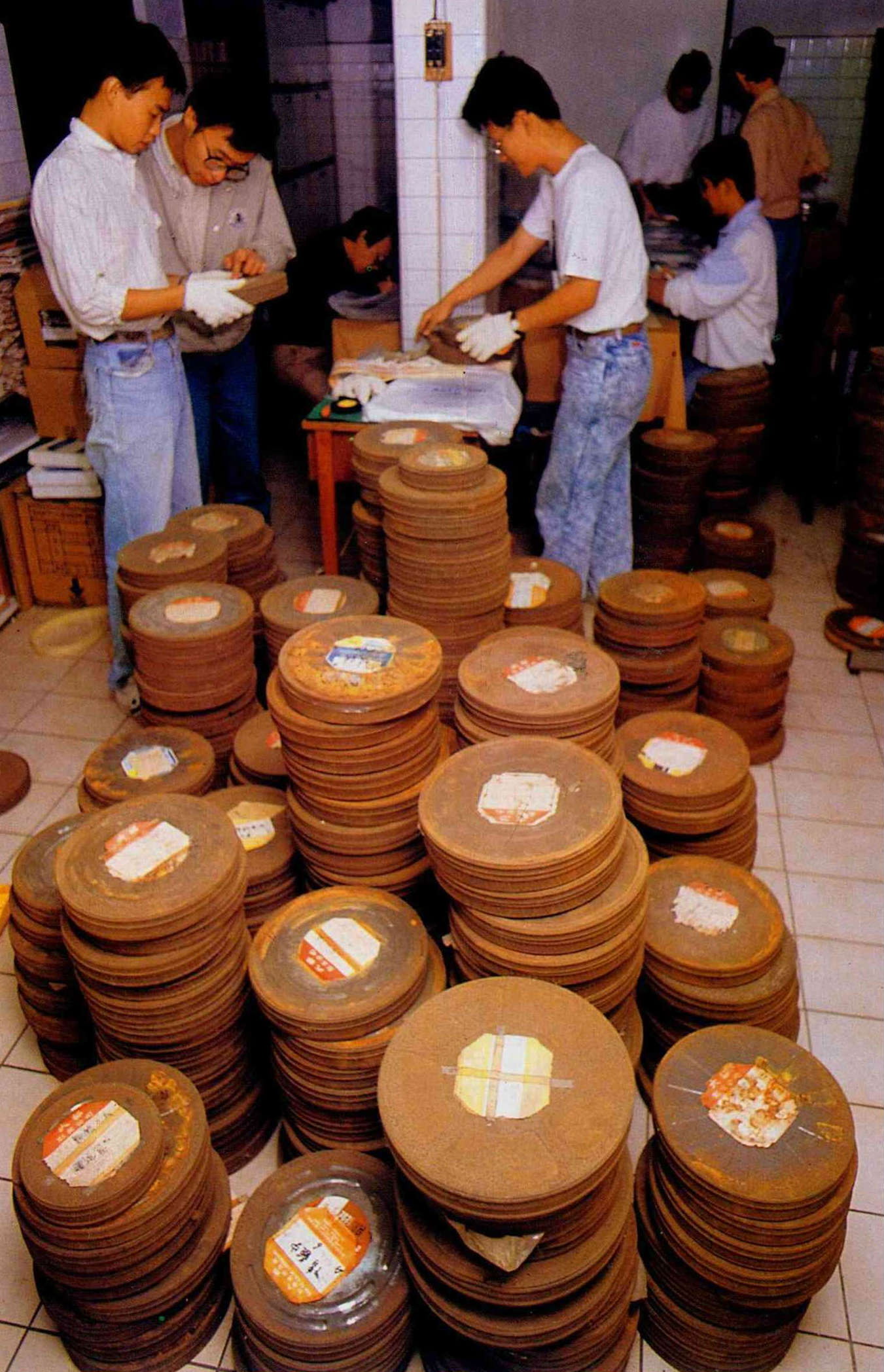 電影資料館同仁正在士林大都片廠幫台語片「整容」。(楊文卿)