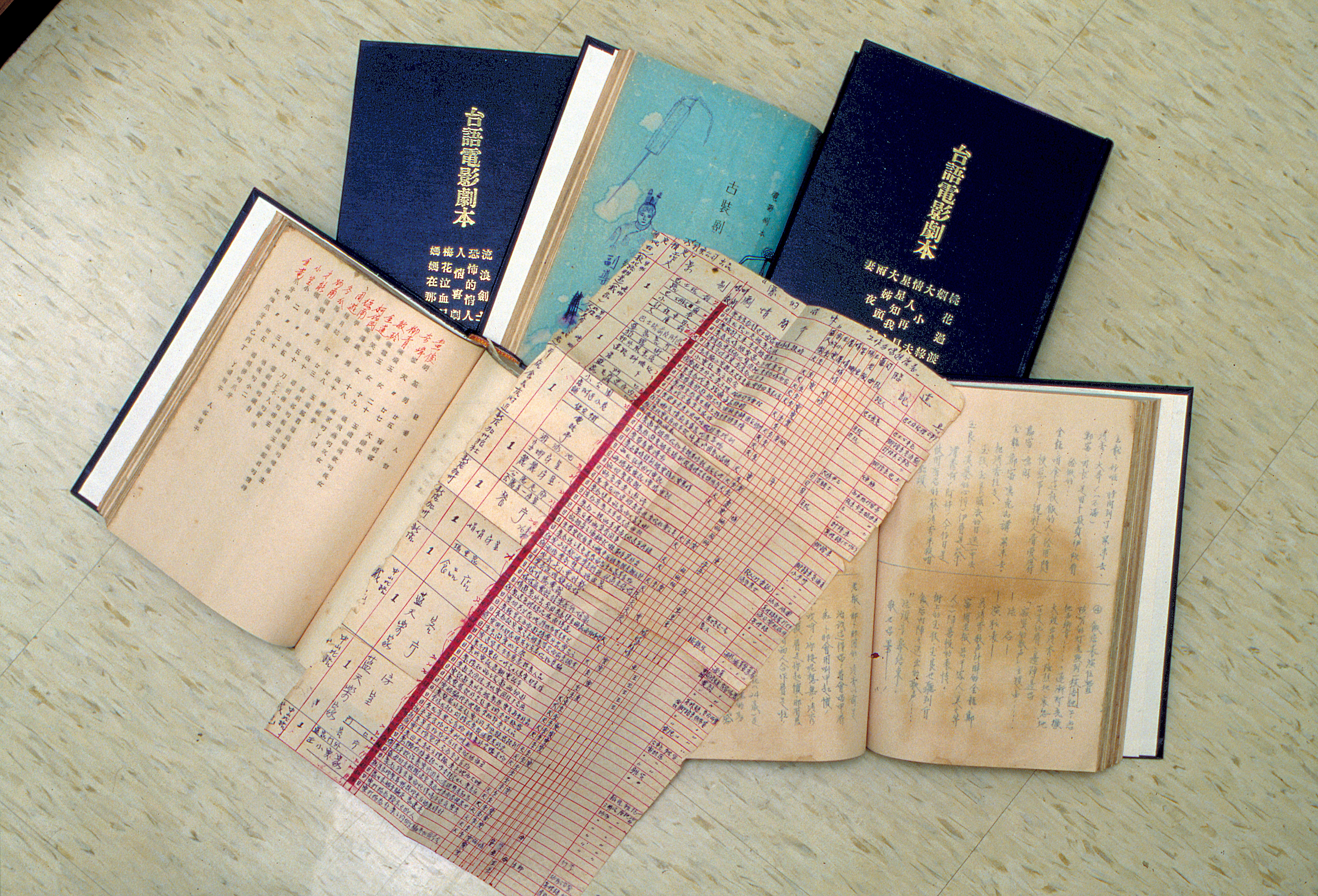 泛黃的台語電影劇本和分鏡表,已成「骨董」了。