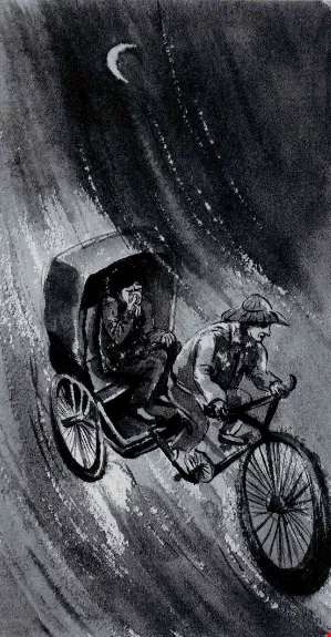 我的天,這真是一個發了瘋的黑夜,這風吹得我發昏了,昏得我都不曉得我站在哪裡。天和地,攪成了一團,我的腳底下是浪,我的頭頂上是天,我得靜靜地記牢。這是個爛醉如泥的黑夜,一個無限制供應燒酒的黑夜。喝著這一口口的風,我也醉得飄飄欲仙了。風跟海浪一般,一波又一波地撲來,它就是還在老遠,你已經能聽到一片海浪的喧嚷。我背後拉著的是一輛空車,這空空的負擔卻有多重!×他娘!竟連一寸也踏不上?好像有人用手擊起我的前輪。我就是這樣站起來蹬,仍還是踏不動,鍊條恐怕要斷,聽它喀喀的聲音。這根細骨的車把,難免不被我斷成兩截哩。還是下來推著走罷。哦!它又轉向了。在大風裡走路,像個會使草上飛的神行太保。我得把兩條腿紮穩,跟樹根一樣,牢牢種下地去。霍,這風好潑辣,她抓我的頭髮,搖我的腦袋,我的眼睛也被她吹歪了。要上來的這一陣更大,聽這聲音……它使我呼吸都斷了……又來了,更大的……抓住!老天爺,翻啦!……噢——噢——操他奶奶的……噢,……讓我喘一口氣,我坐在地上喘一口氣……我剛才以為要飛掉,一踉蹌,差一點騰空而起,後來我大概撞上了人行道上的水泥台子。臉破了,出血,這道傷口準不淺。相當的痛,像刀子在臉上割似的。我怎會沒有站穩?也許實在因為風力太大。我喘得太厲害了,像一隻風箱。我的胸脯都喘得快鼓到喉骨。四十三歲,比不上從前二、三十了。那時爬一座山,嘴都不張一下。