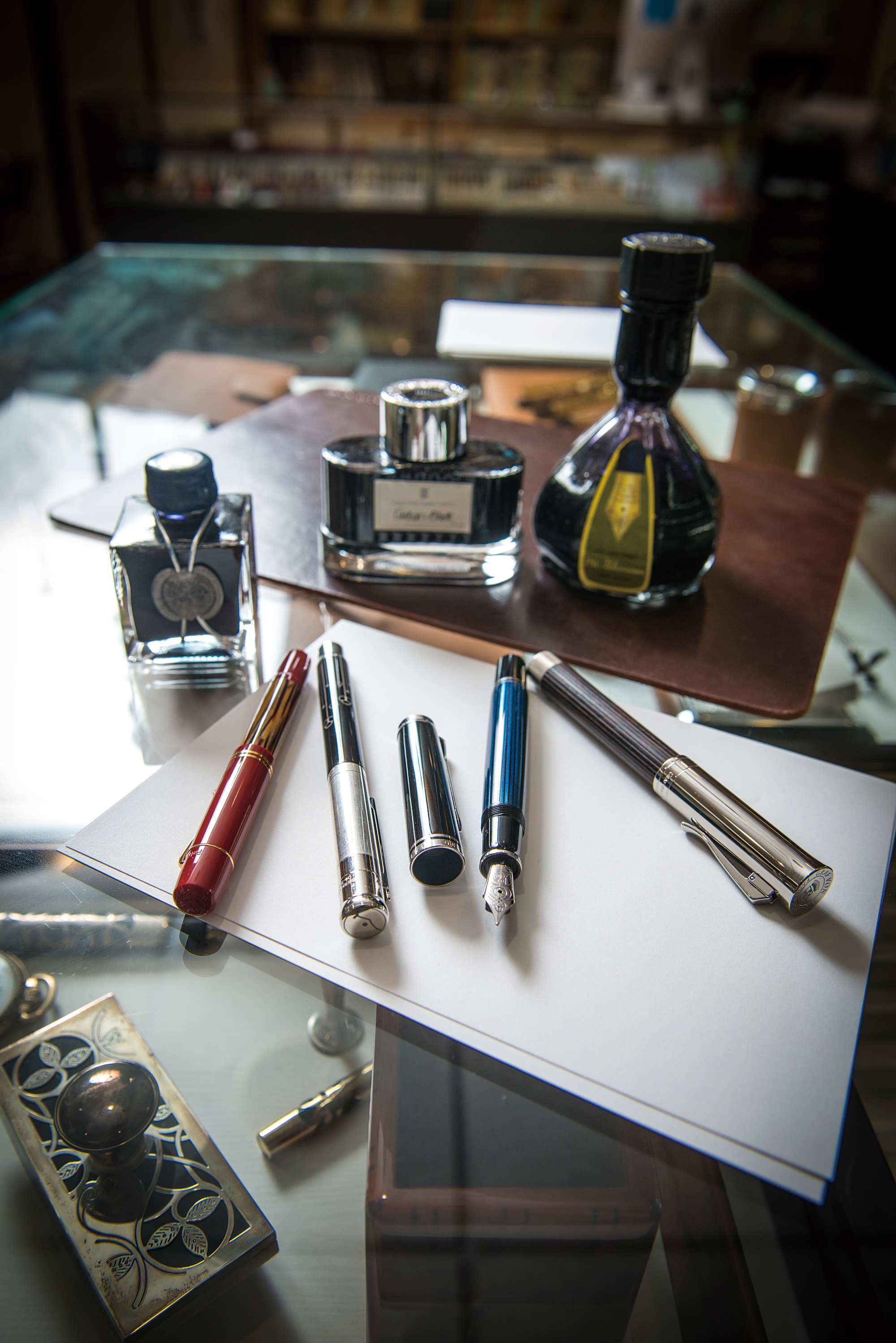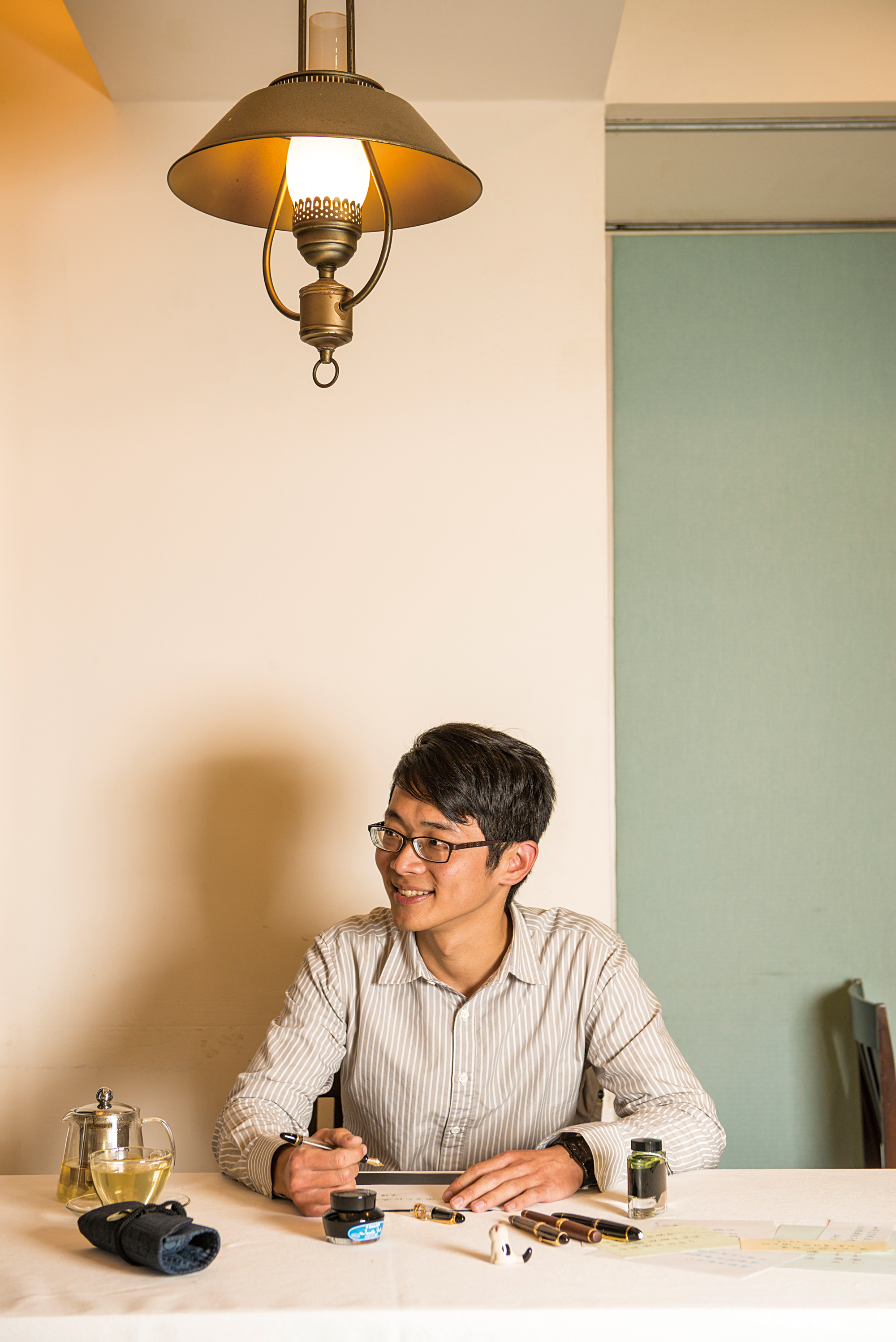 擁有二、三十支鋼筆,其中不乏價值不斐的古董鋼筆,但葉曄習慣以平價筆示範,最常用的是一支7元的SKB秘書型原子筆,「這款筆出水滑順,運筆也很順暢,寫出來的字一樣漂亮。」