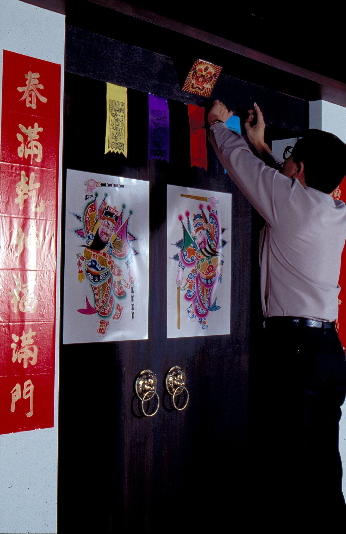 古代民間又盛傳一山桃林裡,住有「神荼、鬱壘」兩位神仙,專吃妖魔鬼怪,因此人們就想像這二仙的模樣,以桃木雕像,懸掛在門上,期能永保平安,於是產生了「桃符」。