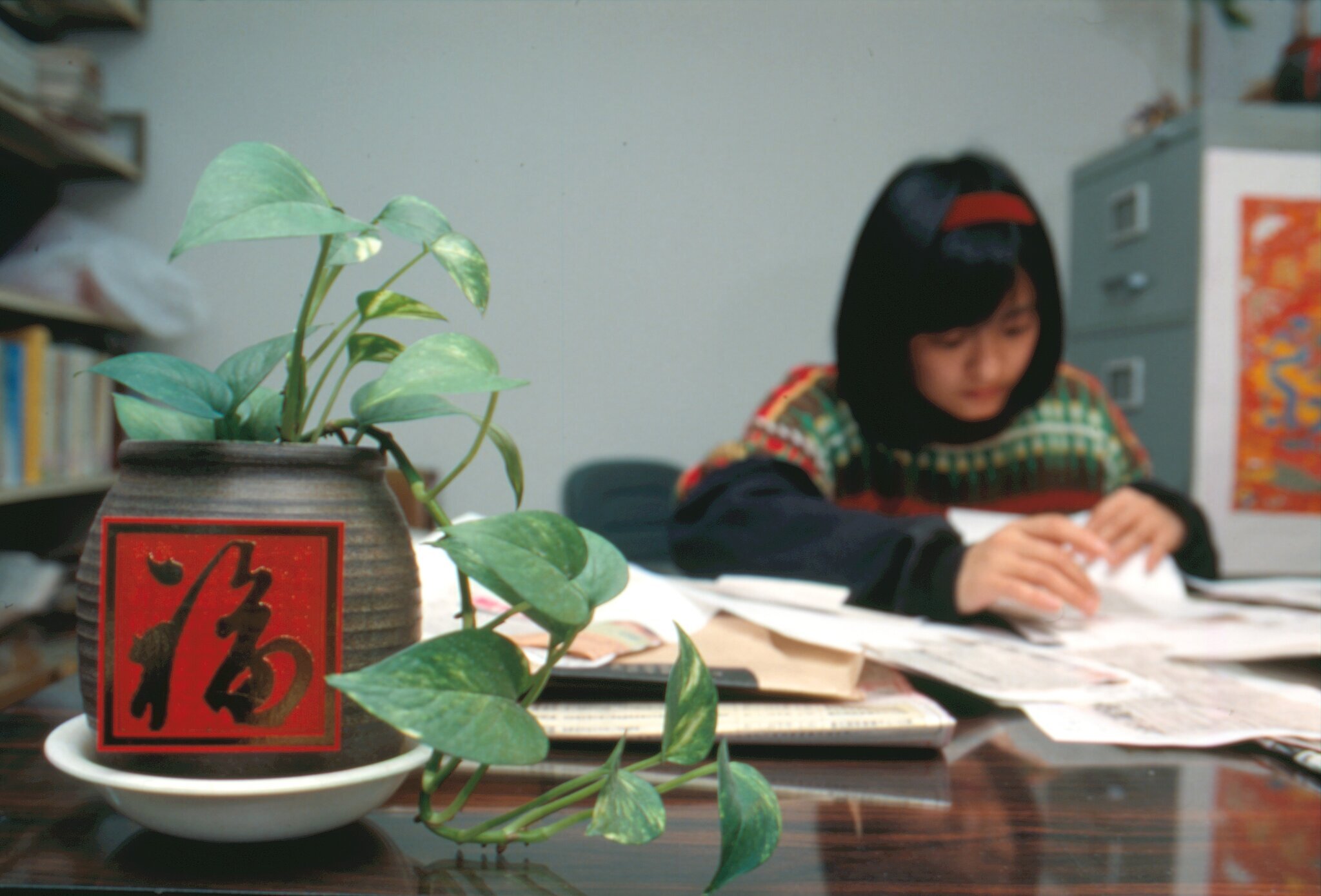 櫃子上貼張「黃金萬兩」,希望「裝」進更多錢財。(邱瑞金)