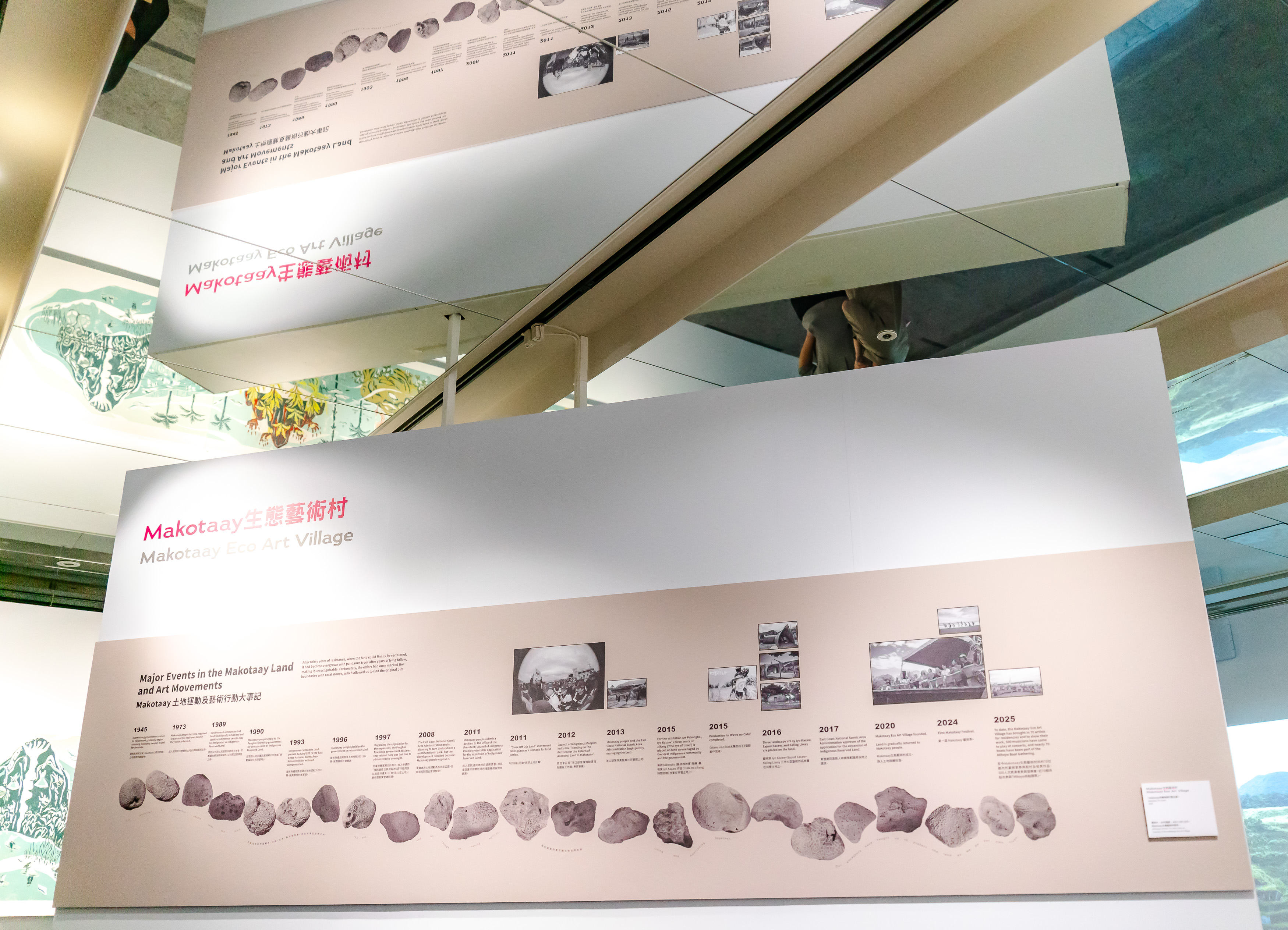 展覽介紹Makotaay藝術村的歷史。所在地為花蓮豐濱石梯坪的原民祖耕地,歷經「還我土地」運動後終於在2020年收復。
