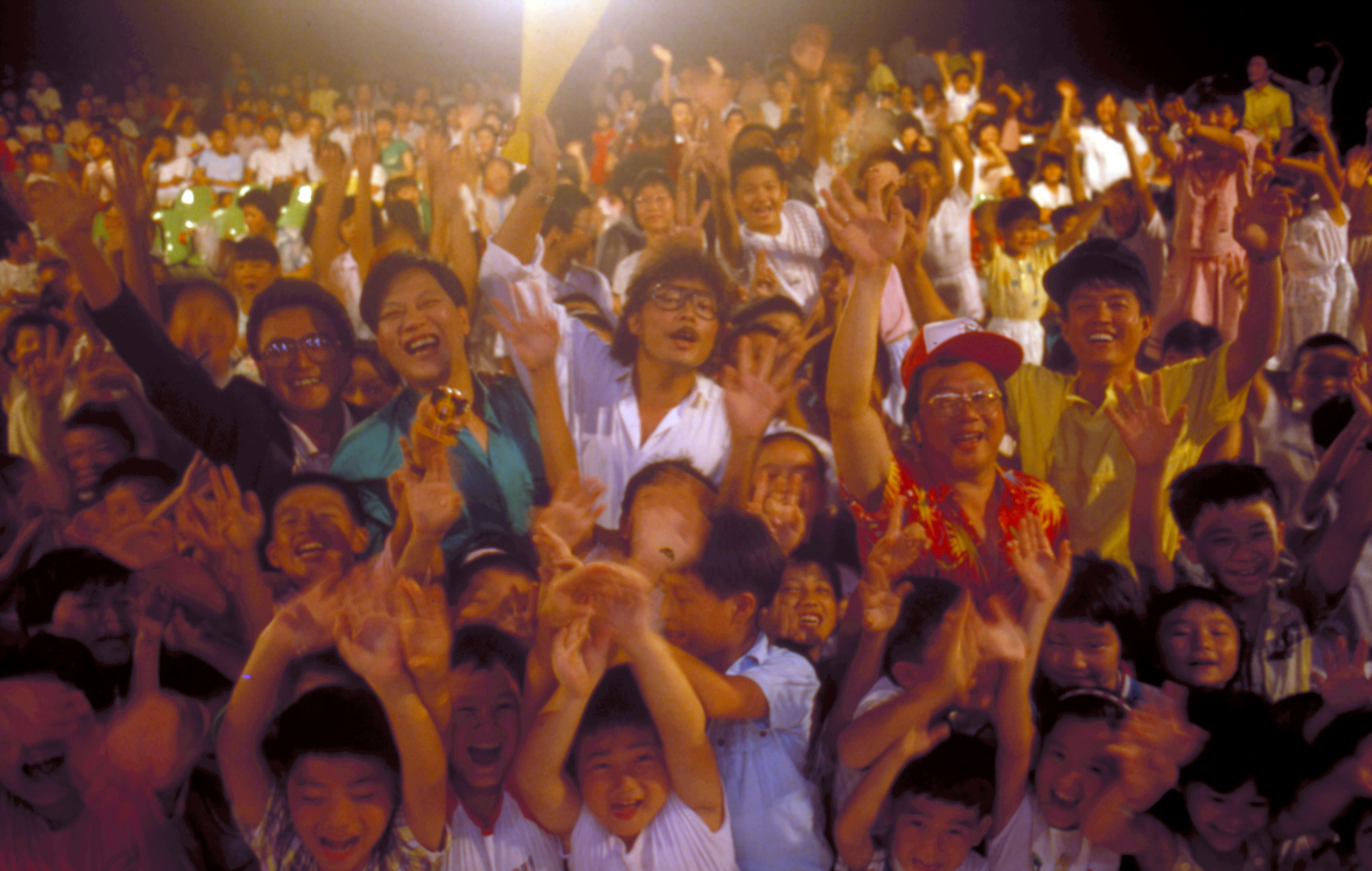 午後一點鐘左右,棚外的小廣場,小頭鑽動、童音喧囂,數百位小朋友個個眼睛瞪得圓鼓鼓的,不放過任何一個從汽車中走出來的明星。