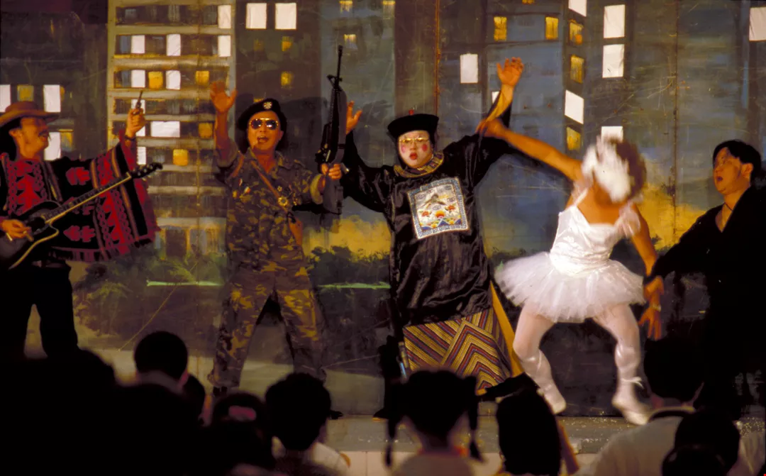 古今中外的人物全上場,黃金五寶演出一齣誇張荒謬的爆笑劇。