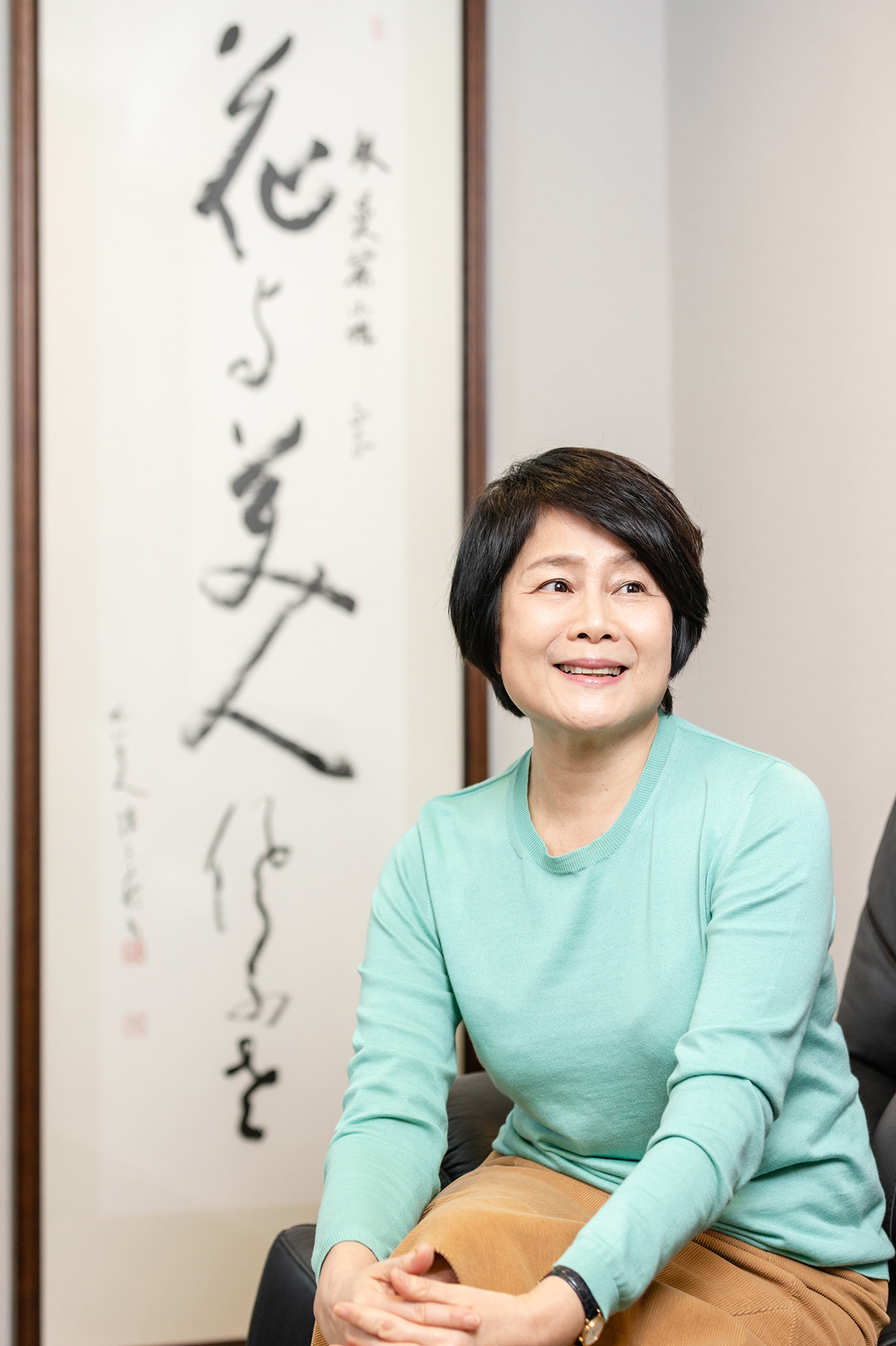 在展覽「光──台灣文化的啟蒙與自覺」重新亮相的〈甘露水〉,展場為同心圓設計,〈甘露水〉擺在核心,烘托出該作品的意義與價值。