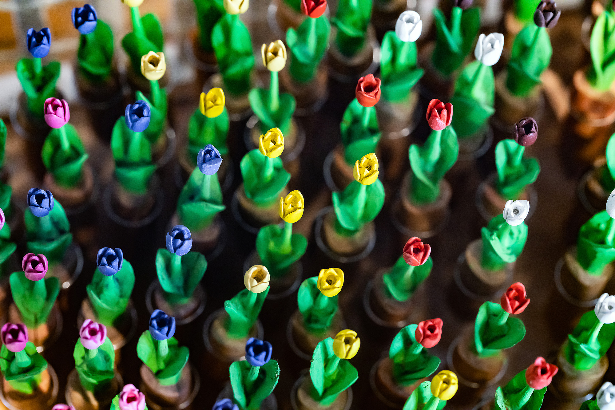 問他是否養成看到任何東西,都不自覺有「這個可以做成什麼」的習慣?鄭鴻展微笑點頭:「沒錯,沒錯!」他曾經用牙膏管蓋頭上漆後做成料理鐵鍋,把「休足時間」藥用貼布塑膠薄膜做成停車場的水溝蓋等等。微縮模型創作,最大的樂趣就是把不起眼的材料,做成細節逼真的微縮版用品。