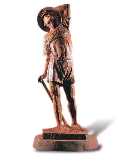 「雕刻時,我會將自己化身為所要雕作的人物,去揣摩雕作人物的心思、神態、表情,透過平日觀察各行各業肢體語言得來的靈感,一刀一鑿雕作而成。」黃國書雕刀下的人物不僅真情流露,「眾生相」的多樣題材更源於對世間的關注和對生命的熱愛。