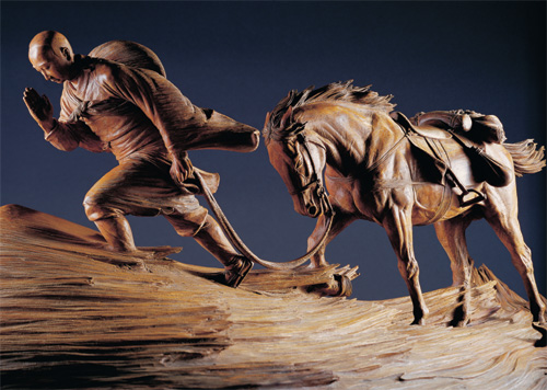 《難行能行》獲2003年國家工藝獎一等獎;唐朝玄奘大師獨越中亞大沙漠,雙腳踩在滾燙的荒漠上,數次在生死邊緣掙扎,仍不減「寧可西進而死,絕不東歸求生」的堅定心志。