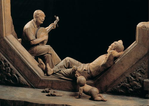 《暮歌》描繪鹿港聚英社內,彈南管琵琶的老人,在蒼茫暮色中,藉由琴音傳達對於生命的感慨與無奈;《門裡門外》,老、中、幼三代人物,以古老廟門為場景,老人在門內彈奏月琴,敘述著時間之河沉澱下的歷史傳承與生活智慧,含著奶嘴的幼兒在門外,手持搖鼓與老人滿佈皺紋的臉龐相輝映,傳達代代相續的希望和喜悅。
