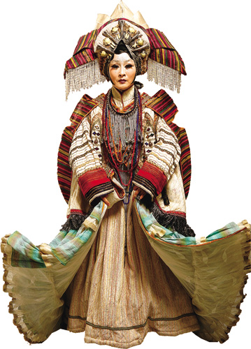從未設計過劇場服裝的葉錦添,百無禁忌、天馬行空,於是在《樓蘭女》中,形象向來溫婉端淑的京劇名伶魏海敏,穿上了文藝復興時期帶骨架的大裙子,以及翻起來有整個舞台那麼大的中式水袖,頭戴繁複高聳的鳳冠,華美壯麗的造型以及彩繪臉譜,象徵改編自希臘悲劇《美狄亞》故事中為了報復丈夫不惜殺子的主角,既狂放又蒼涼。