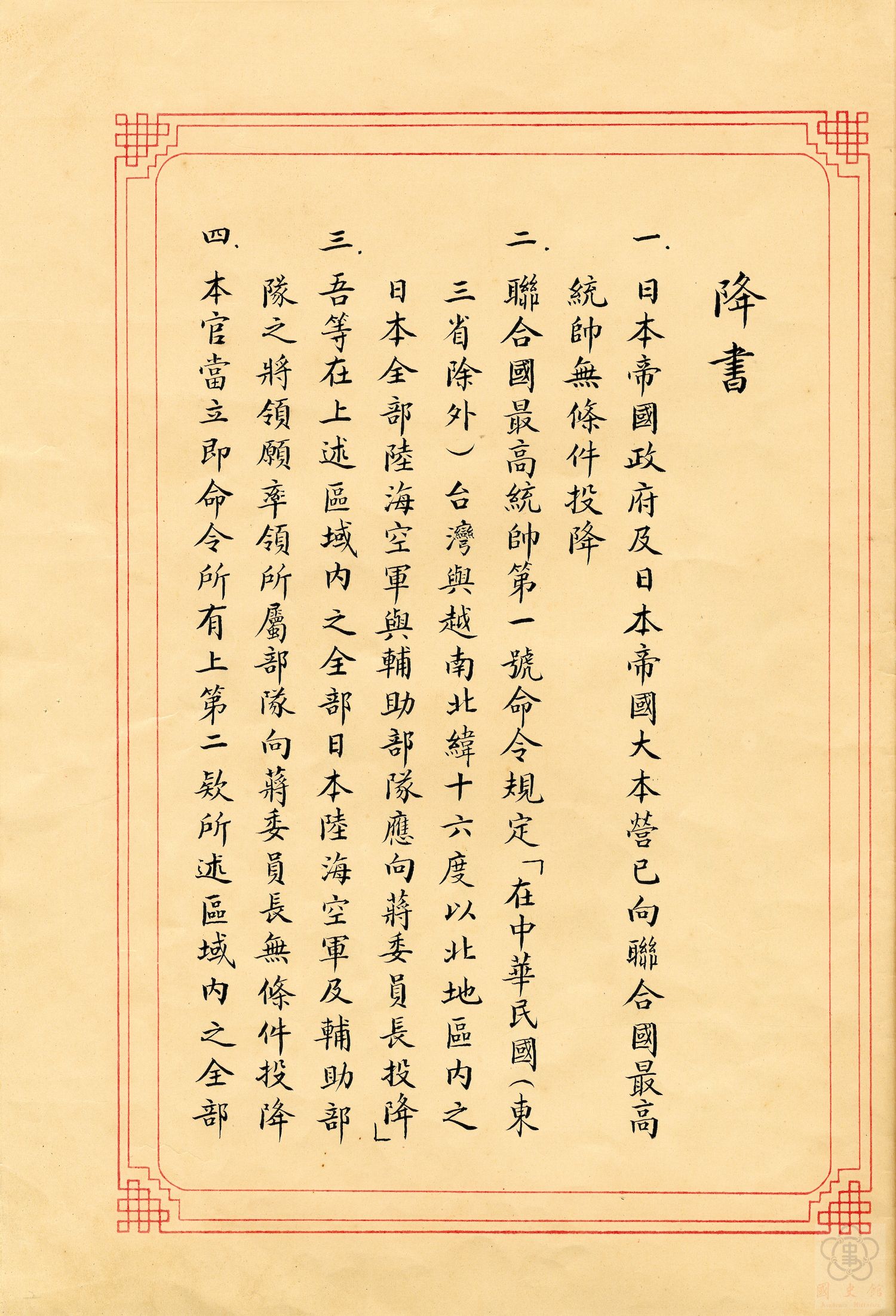 日軍向我國遞交降書與受降典禮後的合影。(國史館提供)