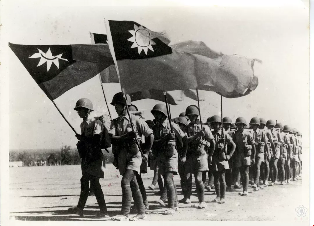 1943年中華 民國駐印國軍以整齊步伐參加結訓典禮。(國史館提供)