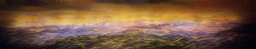 初見到鄭麗雲的畫作時,會被畫布上那一道道充滿力量的線條給吸引。尤其是以自然元素山、海、天、地創作的水火地氣系列作品,更是鄭麗雲的經典之作。鄭麗雲以堆疊減法的方式繪畫,不同於一般以暗色為底再堆疊亮色的繪畫方式;鄭麗雲以亮色為底,待油彩堆疊一定厚度後,再以自己特製的筆刀,趁油彩未乾時刮線,一筆一筆將底部的亮色刮出,由暗而亮,製造漸層的效果。看似沒有規則的刮線,實則每一筆都有藝術家創作的想法,例如風向會造成火焰的角度,夜色影響水色等,且創作都以自身看過的景色出發,用抽象手法表達具象的自然,將東方水墨畫裡的造境融入西方的油畫裡。