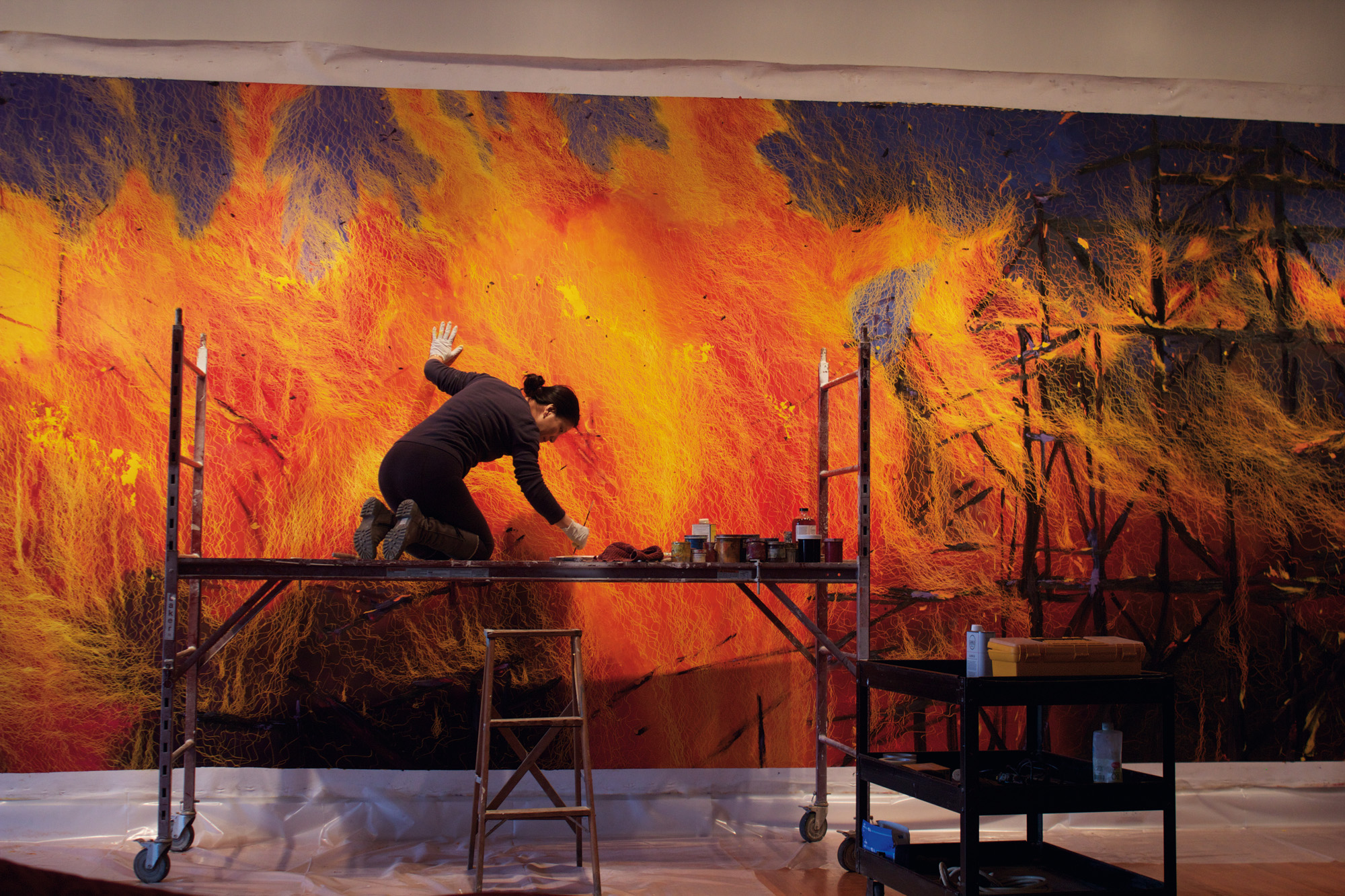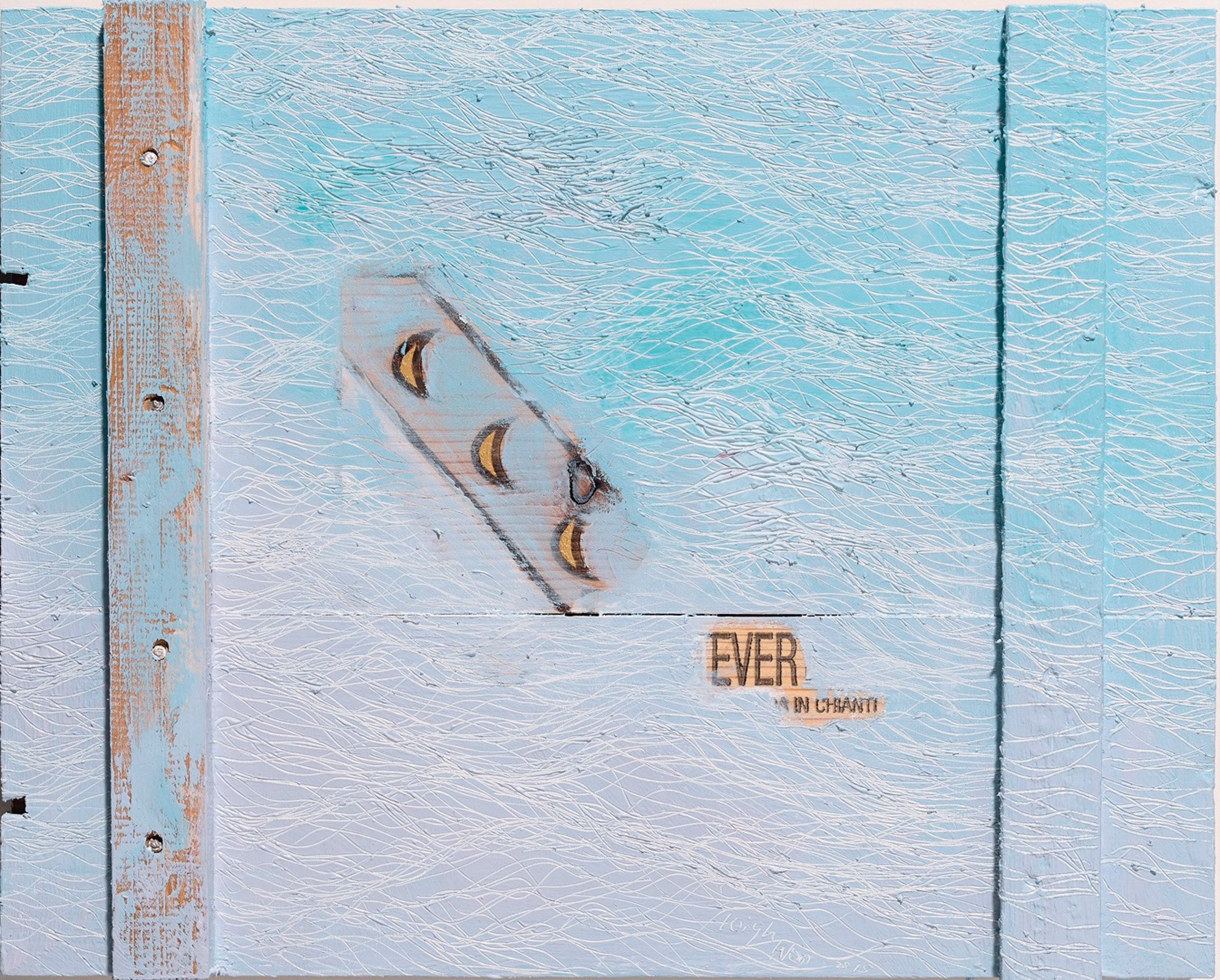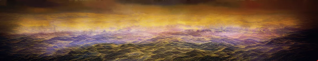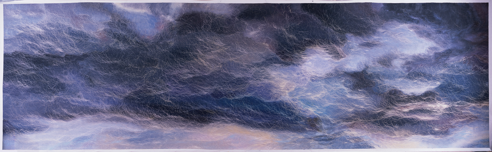 〈水 M〉305 × 1524 cm, 1996. 鄭麗雲以刮線為創作語言, 畫面立體而充滿意境。