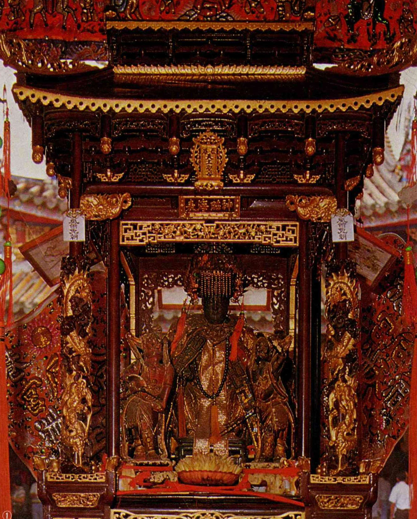 圖1:供奉於鹿港天后宮的媽祖像,臉部已被香煙燻黑。(楊永山/漢聲雜誌)