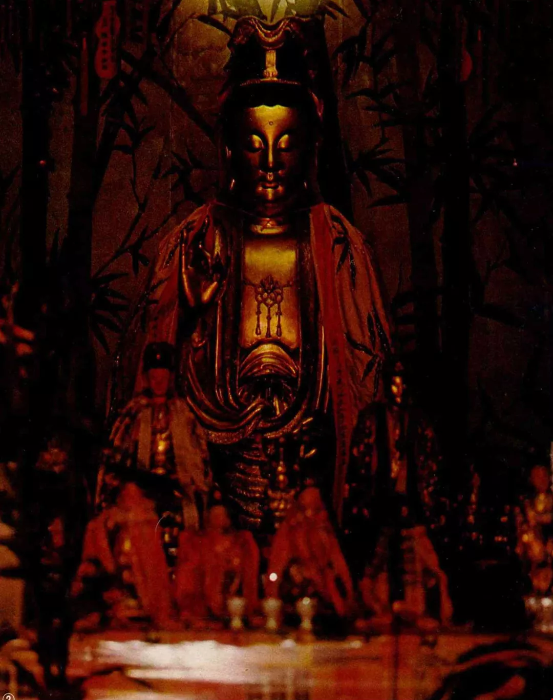 從南北朝到隋唐好幾百年間,佛教常是國教,在帝王的崇信下風行草偃,很快披靡全國。連原來揉和了泛靈崇拜、祖先崇拜、儒道義理、巫覡術士……的傳統民間信仰,也承襲此風,無論在教義或雕造神像的風氣上,均深受影響。此後沿風成俗,廣為民間接納。