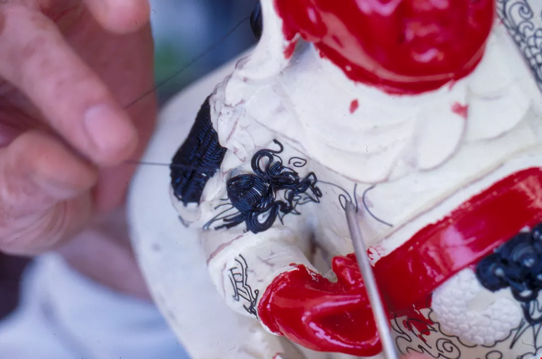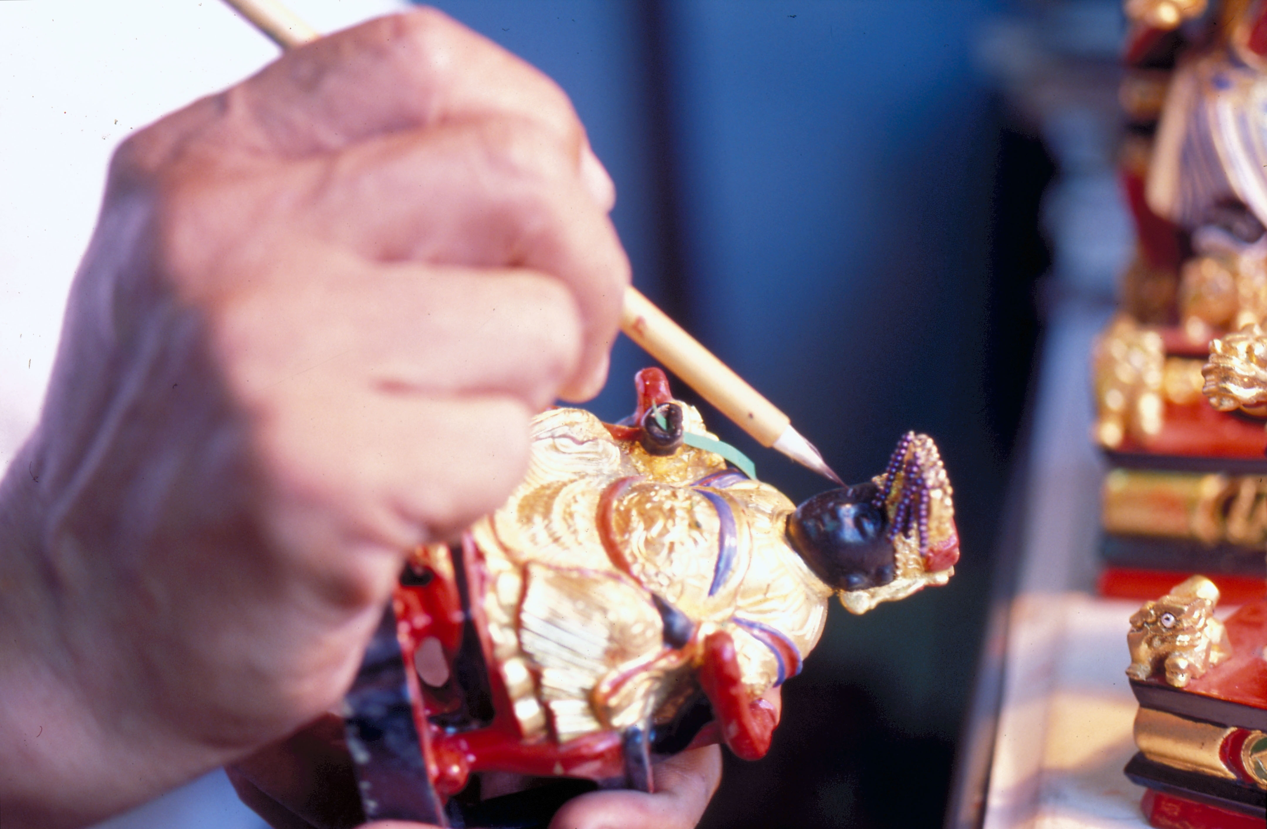 圖3:老師傅正細膩地描繪媽祖神像的臉部。(楊永山/漢聲雜誌)