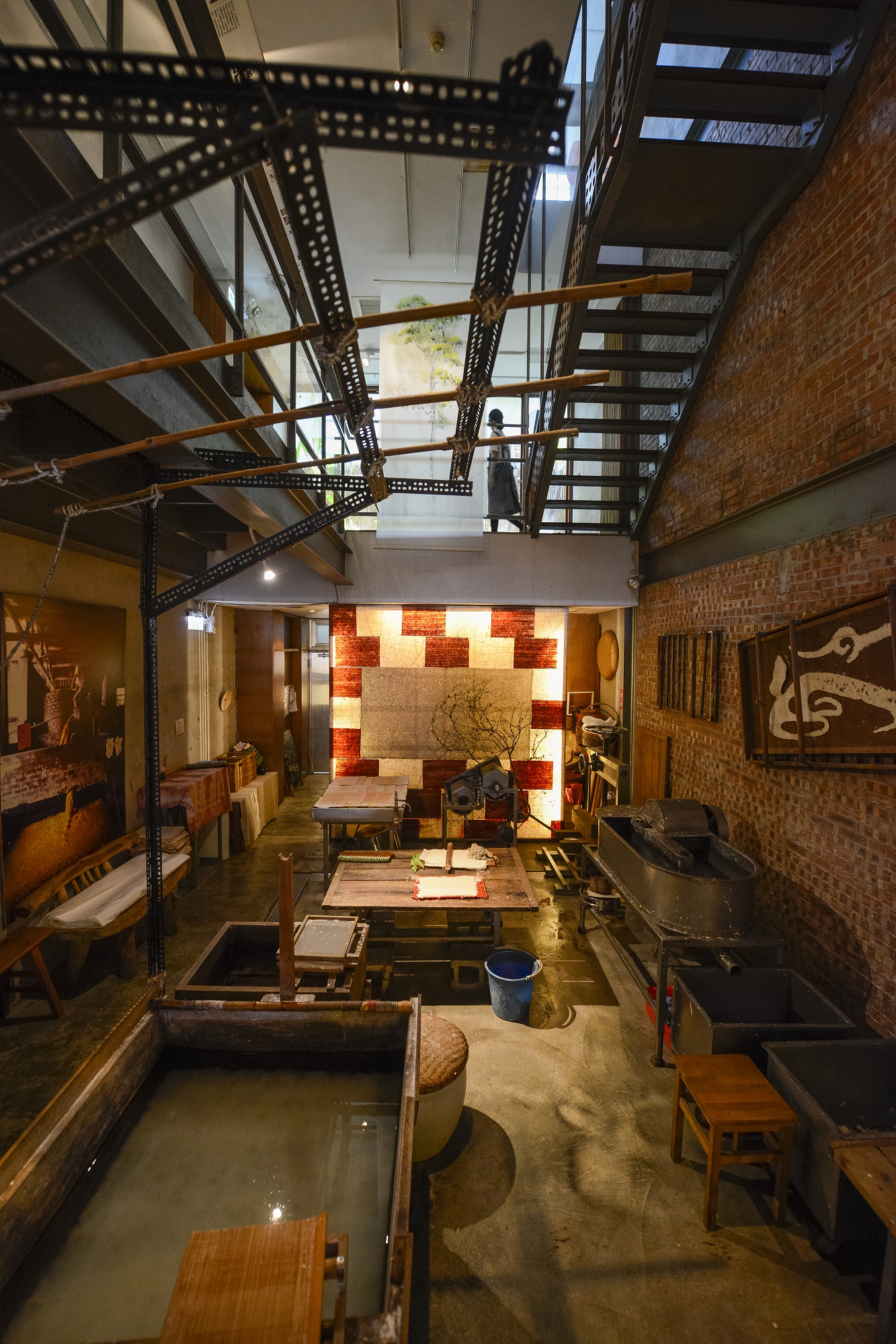 樓高4層的樹火紙博物館,一樓展區 展示了傳統手工造紙的流程。