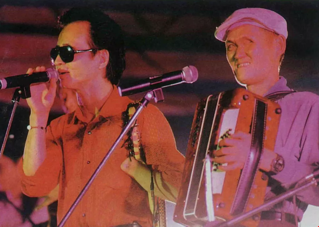 當初僅為了「留下台灣最後一個茶室走唱的聲音」,陳明章慨然擔任金門王與李炳輝唱片製作人,而陳明章有感於二人的坎坷身世而譜寫「流浪到淡水」一曲,任誰也沒有料到它會成為一九九七年唱片市場最大的一匹黑馬。(魔岩唱片提供)(魔岩唱片提供)