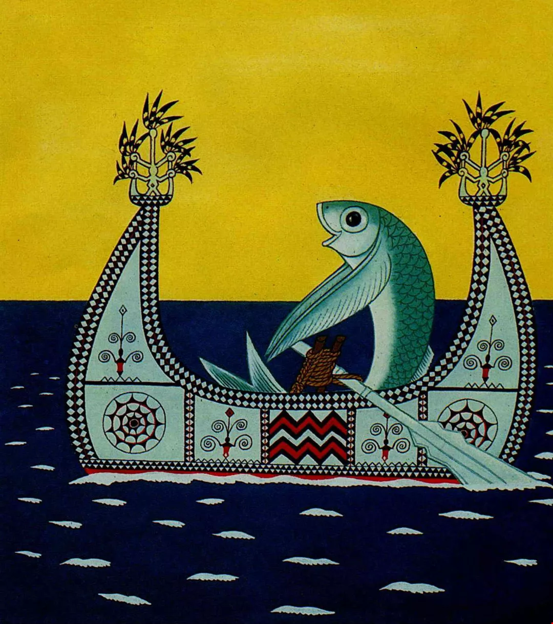 洪義男一九八四年作品「飛魚划船」。