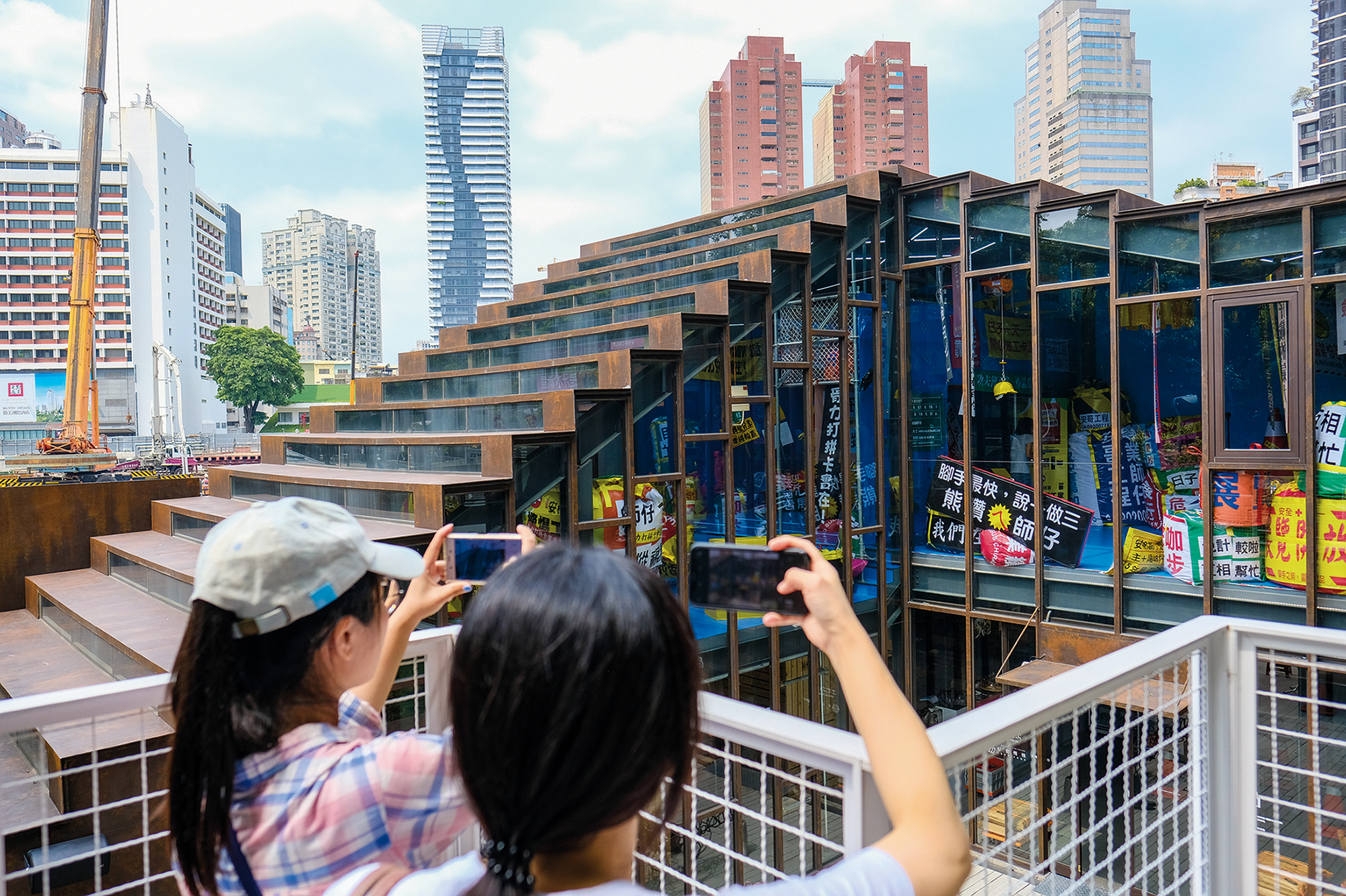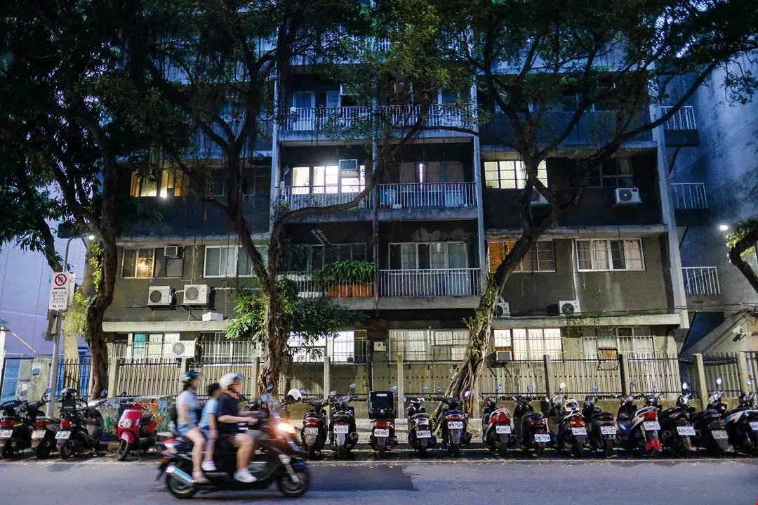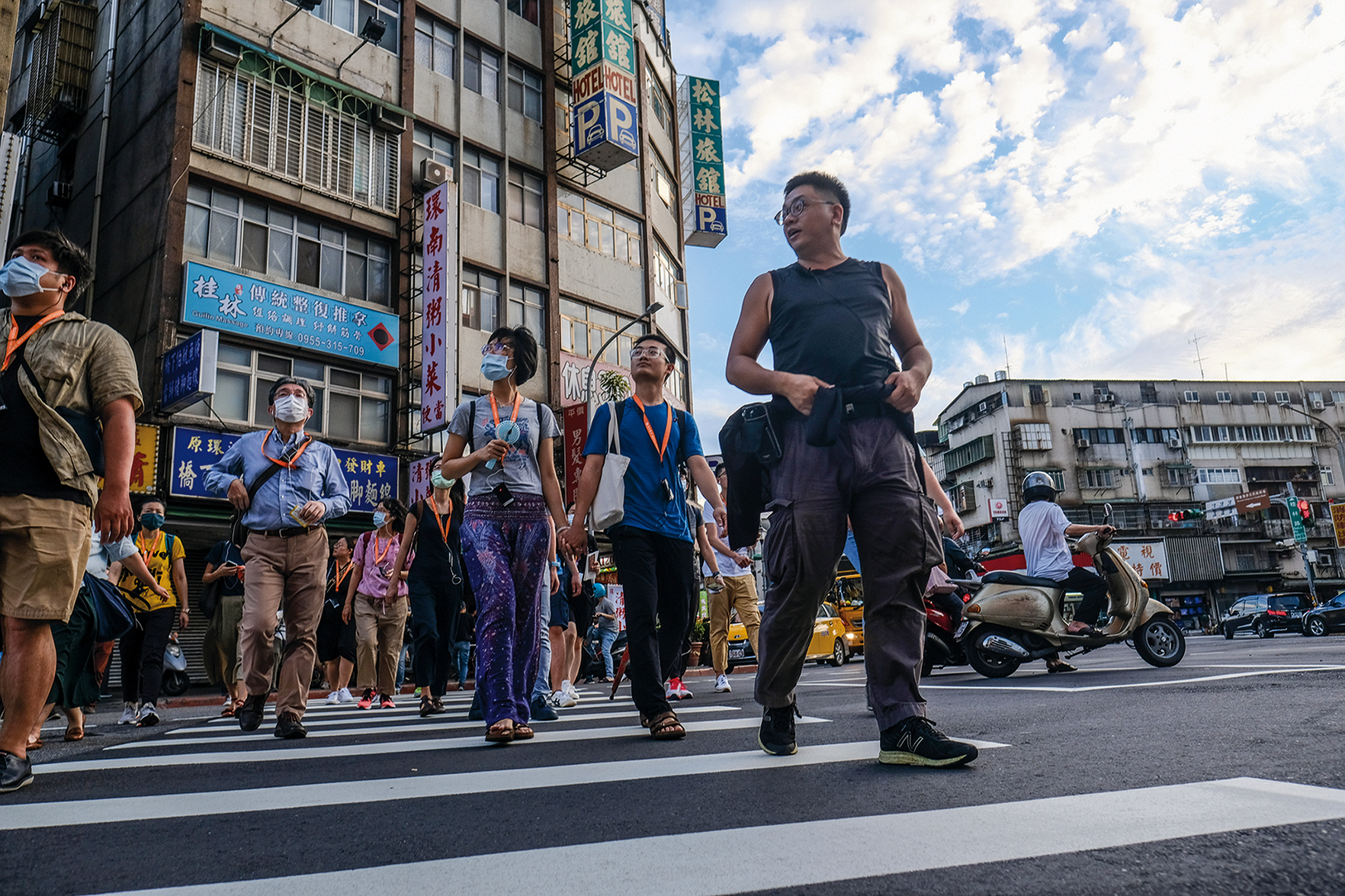 看似平凡的街景,經林立青解說而有了不一樣的觀看角度。例如照片右方的樓梯蓋在室外,是台灣少見的建築形式。