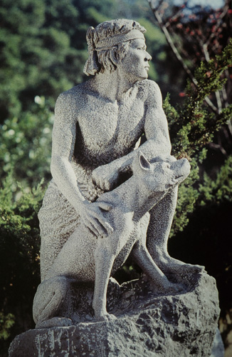 一個原住民牽著一條狗,守望著自己的土地家園。此作1984年獲「全台美展雕塑第一名」,同時獲得「永久免審查作家」榮譽。