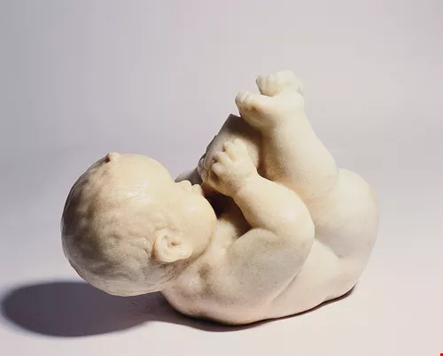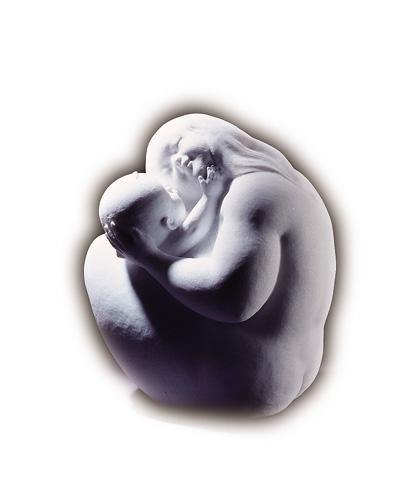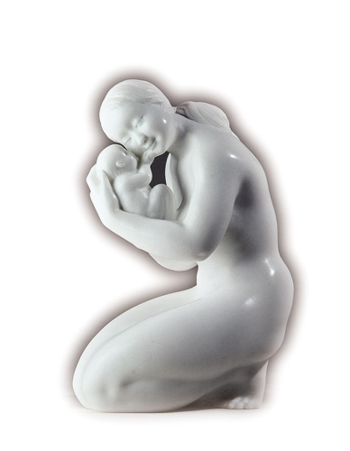 左右二圖為漢白玉石所雕之母子親情系列作品。