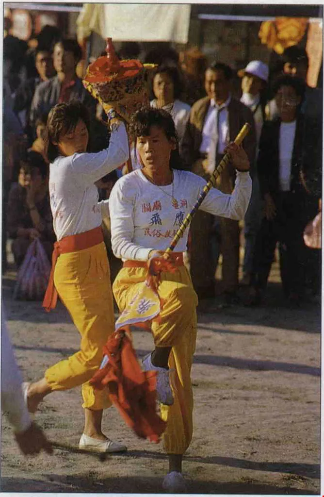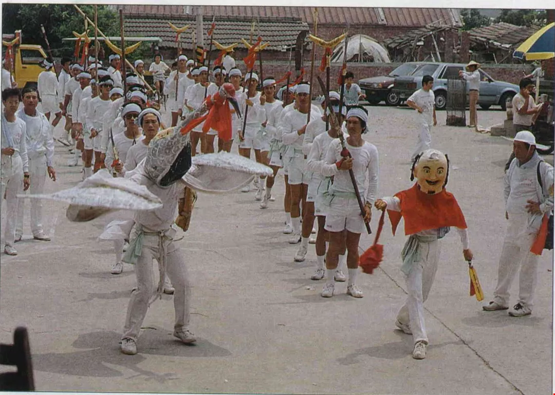 由「宋江陣」衍化而出的「白鶴陣」,二者同具強健身體、凝聚鄉民的功能。(鄭元慶)
