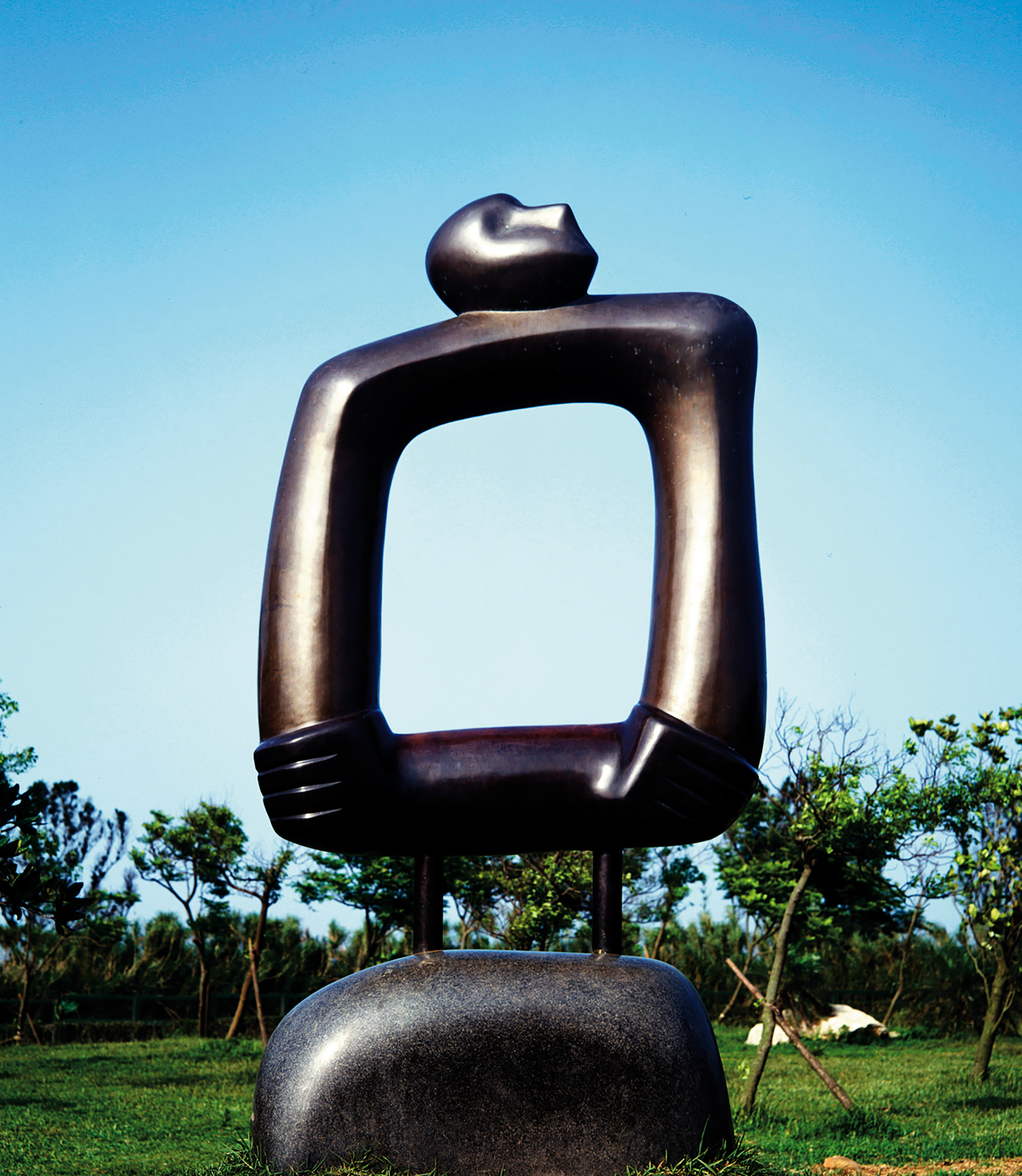 在基本造型中找不到專屬的風格,郭清治改採其他途徑,實驗複合媒材。他曾試著把石頭跟黃銅、青銅和不銹鋼等素材結合,但都沒有成功。「如果不能清楚地區隔材料對比及互相襯托的效果,那就是失敗。」郭清治嚴格地說。