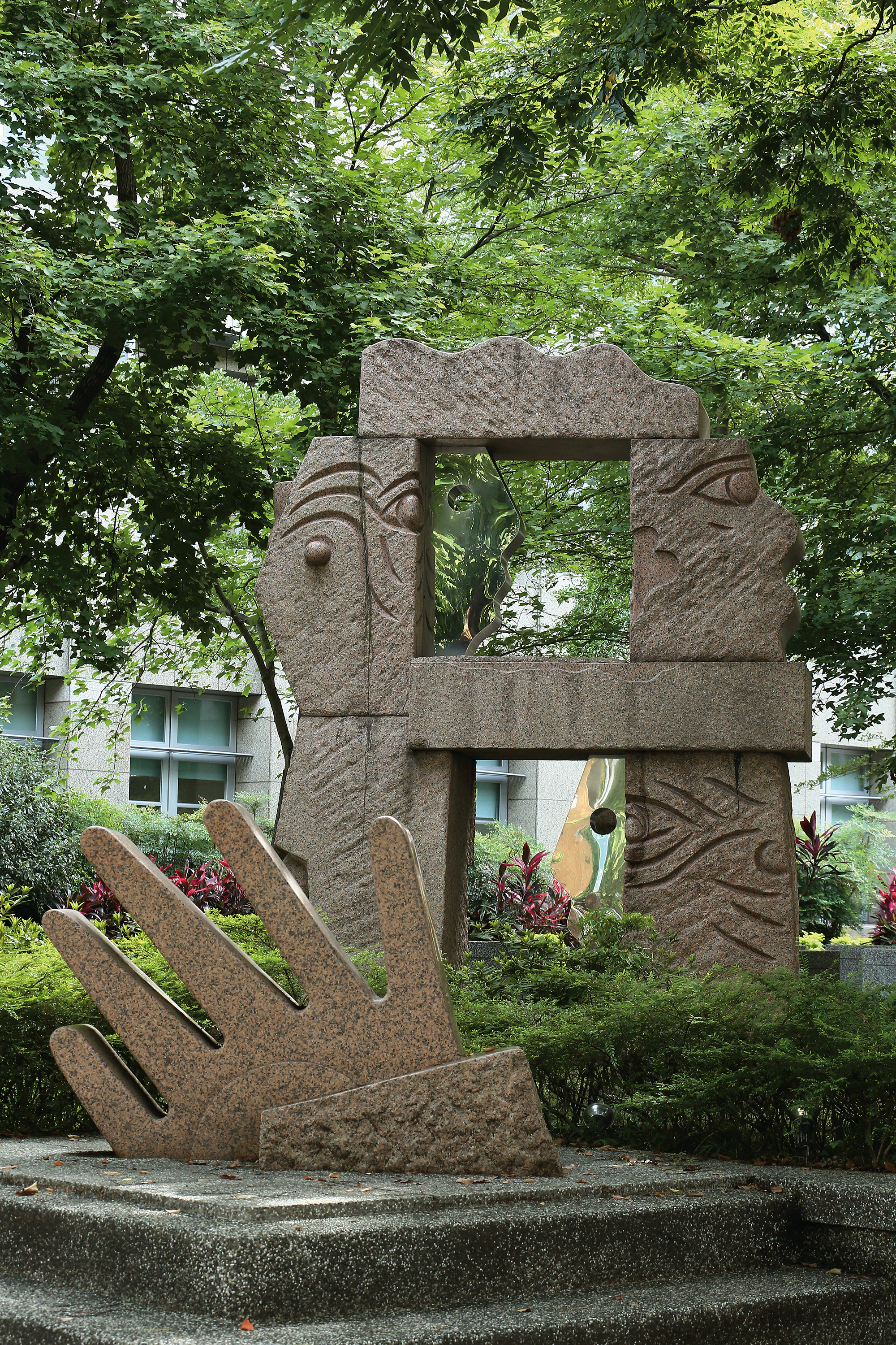 1994年,郭清治受邀參加日本第三屆「亞細亞現代雕刻會國內展」,展出的作品《娑婆之門》被《朝日新聞》特別提出報導:「把兩個『眼睛』刻進紅色的大理石,左右邊的金屬翅膀再從各種不同的角度反射『眼睛』。隨著太陽移動,時時刻刻都產生變化的畫面,如同異次元一般。」利用不銹鋼如同鏡面的效果,使這件作品從不同角度看都有驚奇的景象,在當時實屬創舉。