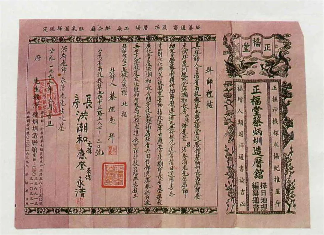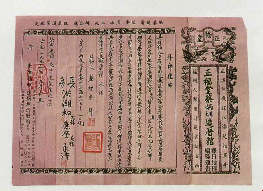 在嘉慶十二年的洪潮和通書上,除了蓋上朱印,還出現這樣的警語:「繼成堂大小通書,僅泉州城內海清亭擇日館中發兌,方是真本。」