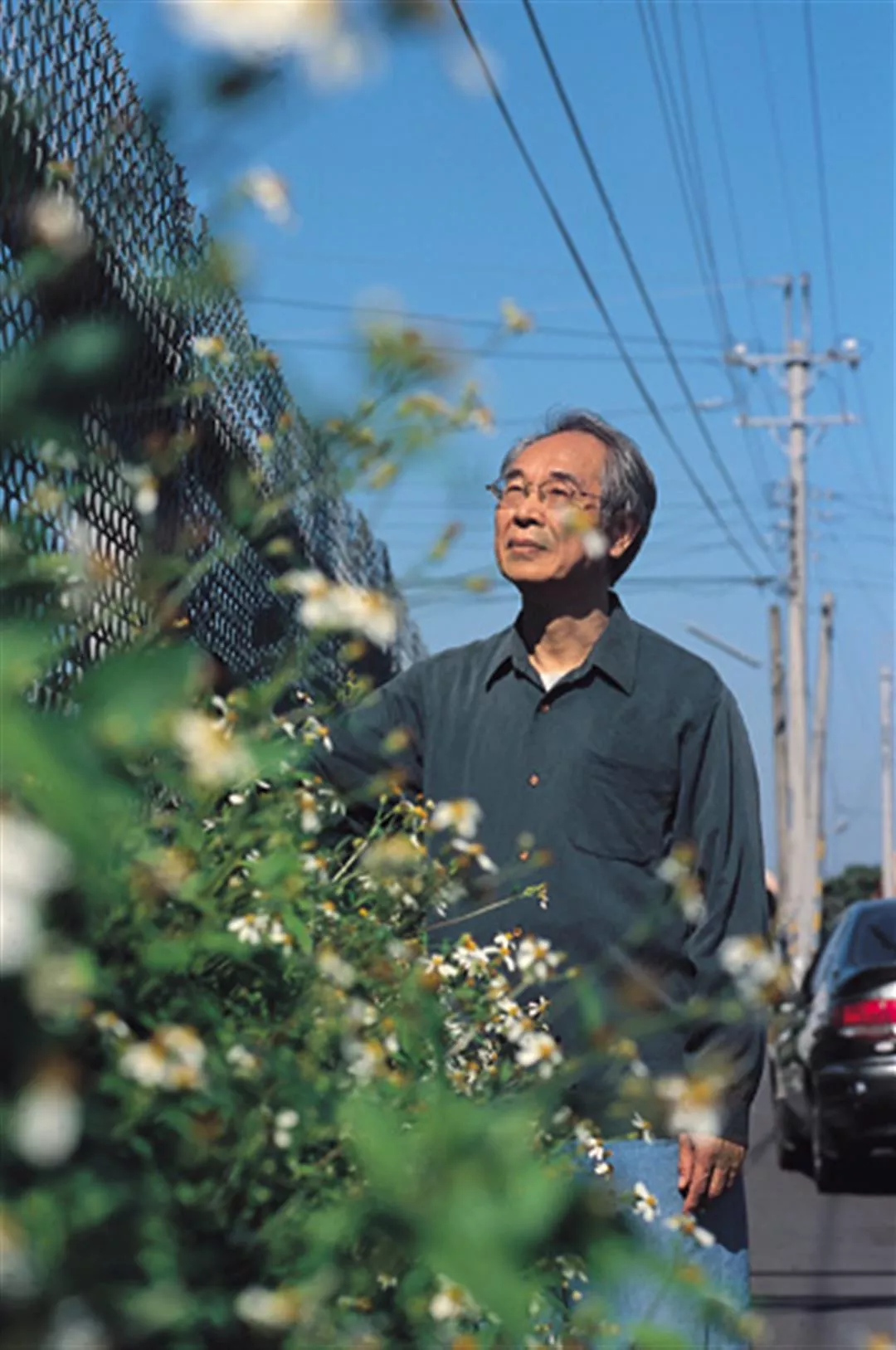 節氣雖已「大雪」,但苗栗縣公館鄉依然冬陽普照。作家李喬騎著腳踏車,引領我們進入巷弄內的居所;隔著一灣淺溪的稻田只剩一片土黃色稻頭,將遠處山巒襯托得益發鬱鬱青翠。