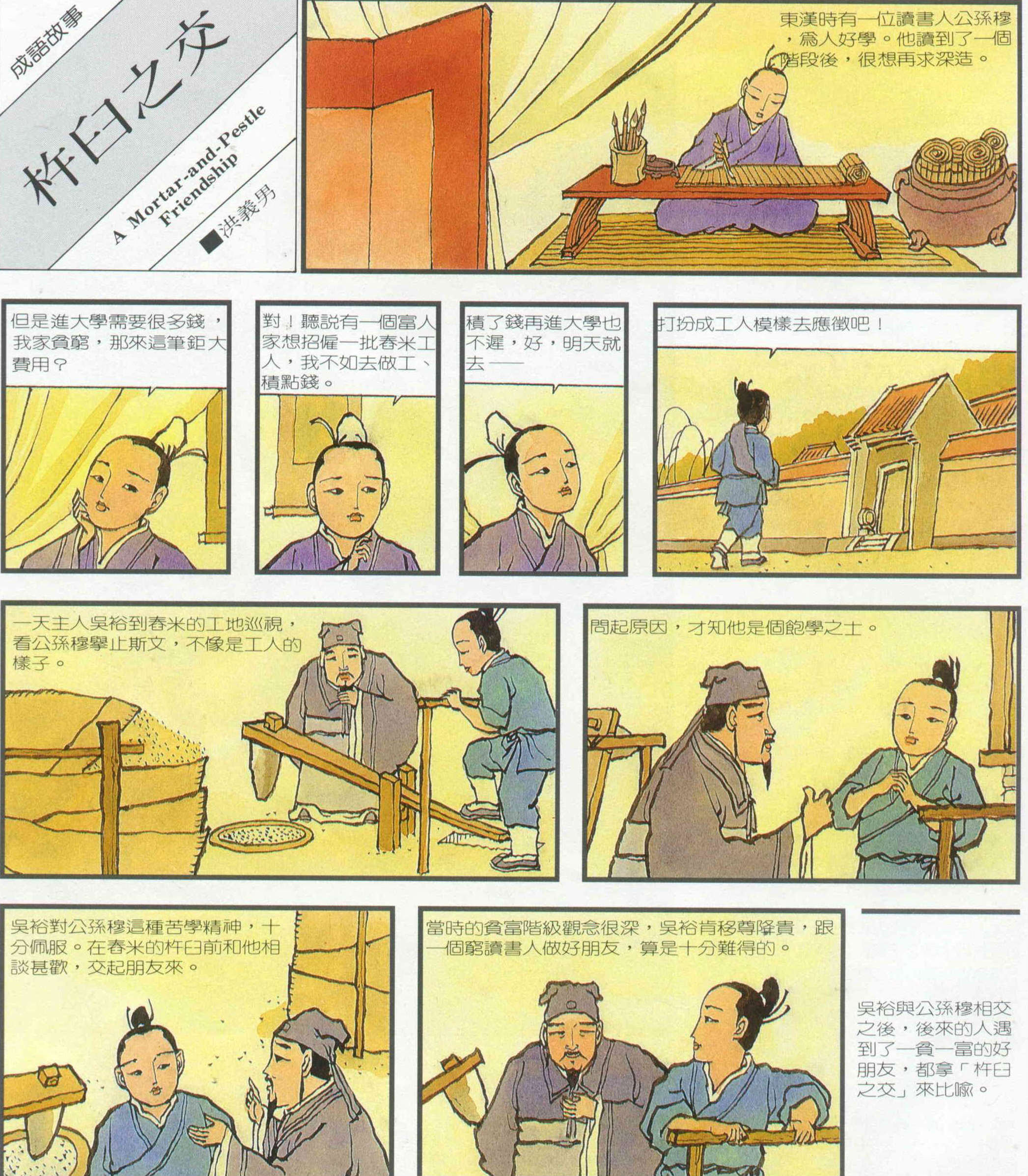 吳裕與公孫穆相交之後,後來的人遇到了一貧一富的好朋友,都拿「杵臼之交」來比喻。