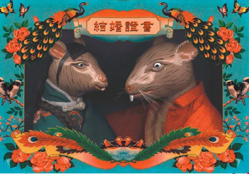 別出心裁的「老鼠結婚證書」,是羅斌編導的國語兒童布袋戲《大稻埕老鼠娶親》的笑點之一。
